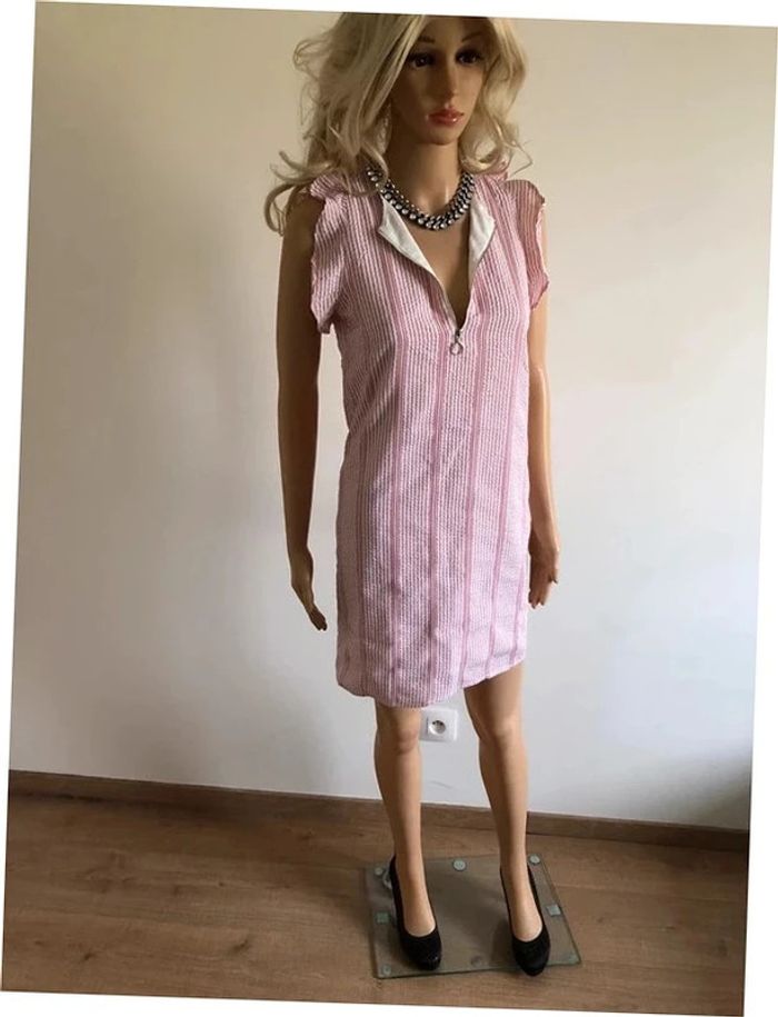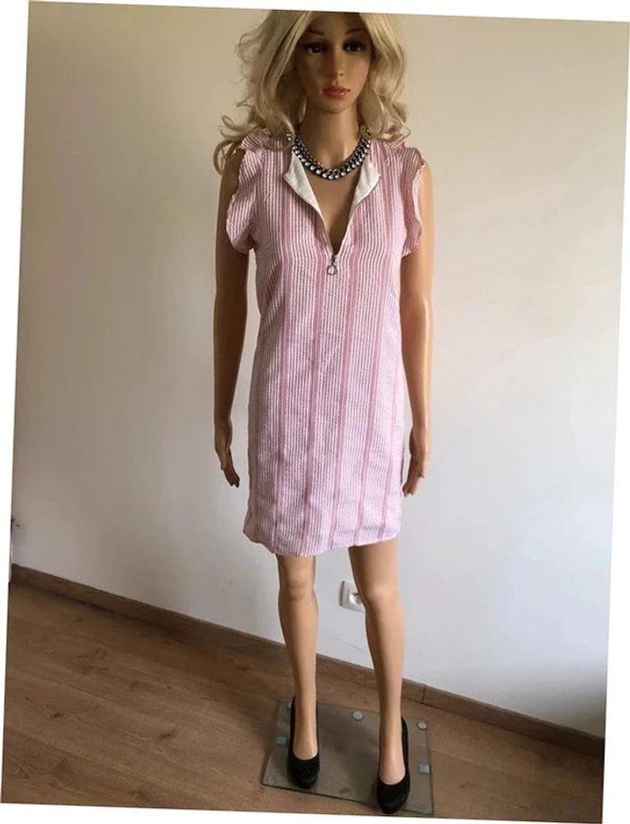 Jolie robe rose et blanche à rayures, sans manches, de marque Molly Bracken. Taille XS. Elle est neuve avec étiquette (valeur 45€). Jamais portée car trop petite pour moi. aisselle à aisselle 40 cms taille 42 cms longueur depuis épaule 85 cms 87% polyester et 13% coton Le prix reste négociable dans la limite du raisonnable. Un petit cadeau dans le colis. (Boîte 12)