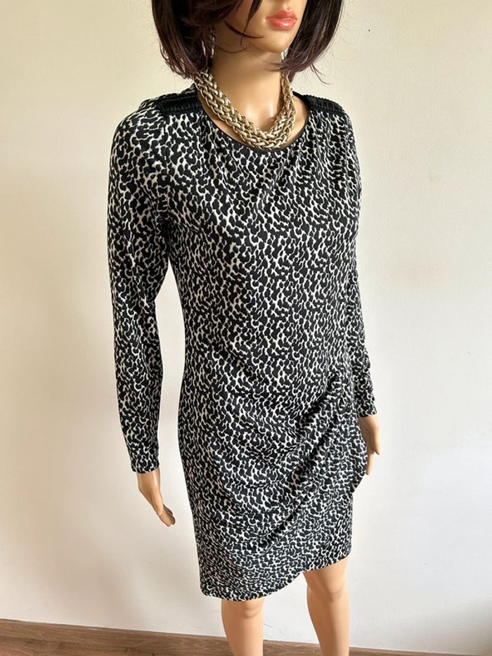 Jolie robe imprimée noire et blanche à manches longues, de marque Morgan. Taille XS qui peut convenir pour un petit S. Portée une fois, en très bon état. aisselle à aisselle 43 cms et plus épaule à épaule 37 cms et plus longueur manches 59 cms taille 38 cms et plus longueur dépose épaule 92 cms Le tissu est extensible Étiquette intérieure de composition coupée Le prix reste négociable dans la limite du raisonnable. Un petit cadeau dans le colis 🌸 (Boîte 49)