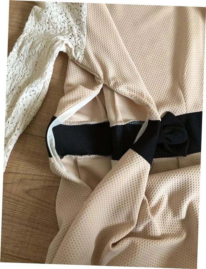 Robe beige et noire à manches longues avec dentelle Molly Bracken taille 2 TBE - photo numéro 6