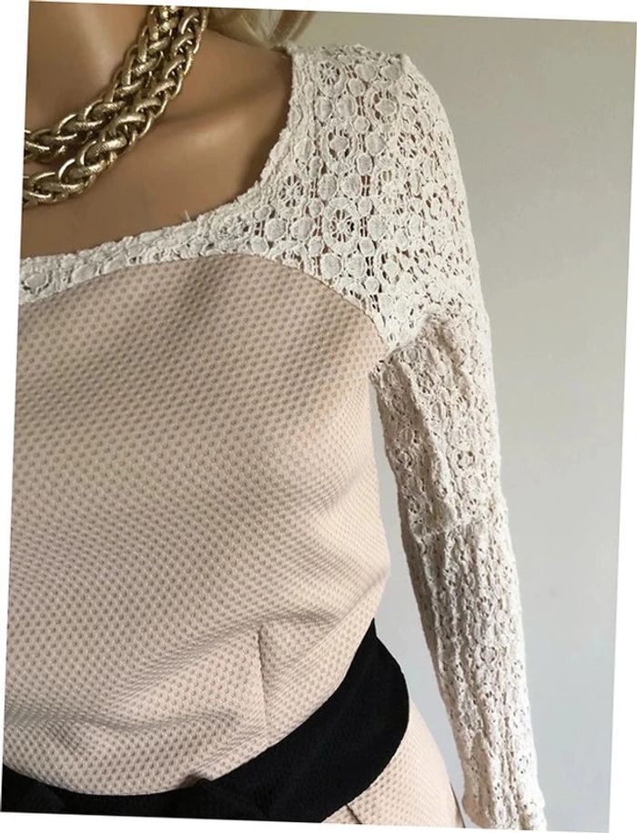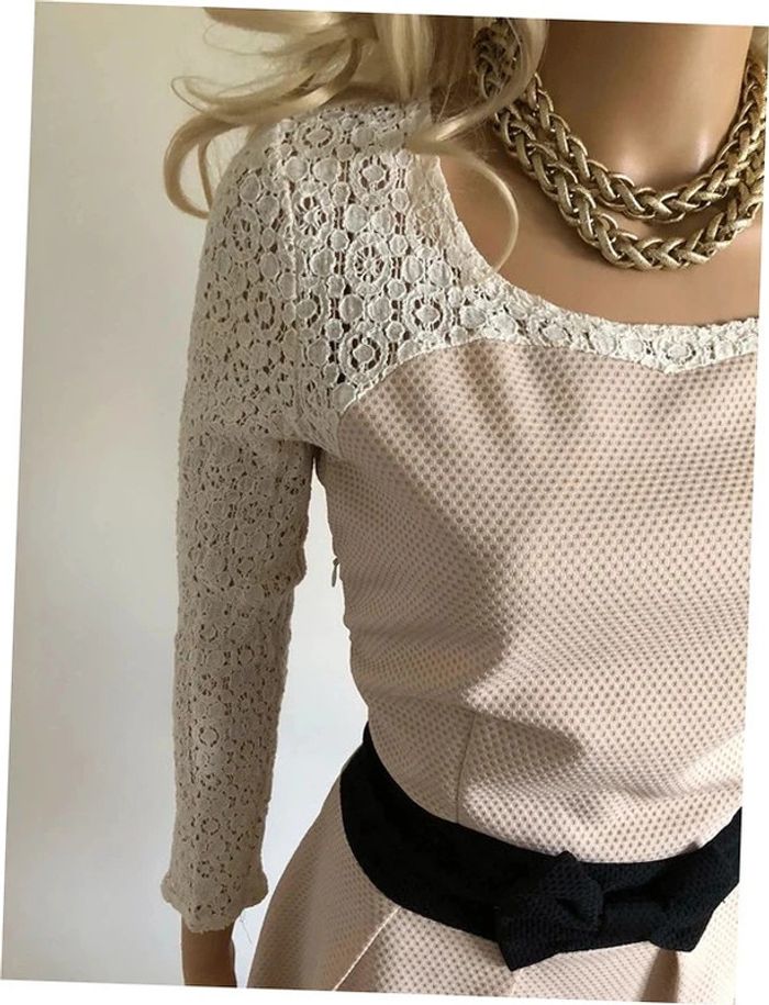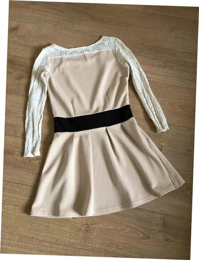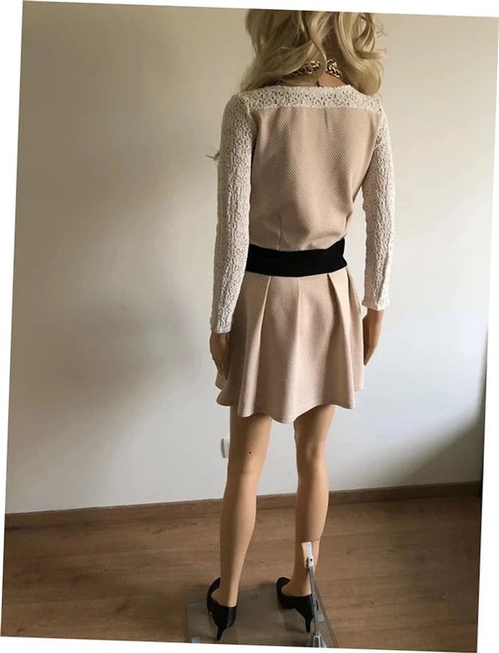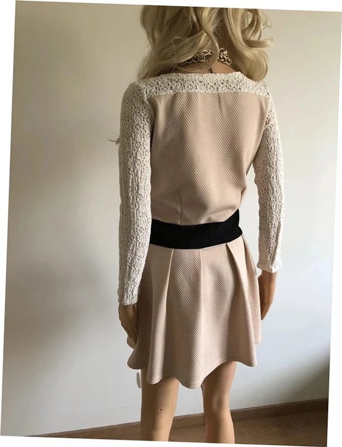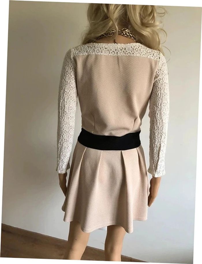 Robe beige et noire à manches longues avec dentelle Molly Bracken taille 2 TBE - photo numéro 4