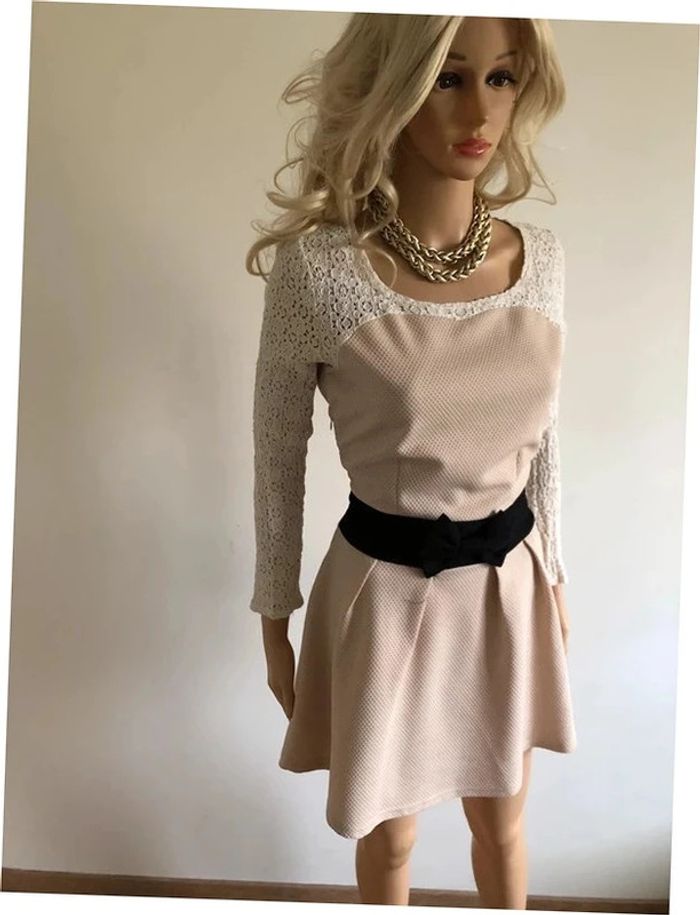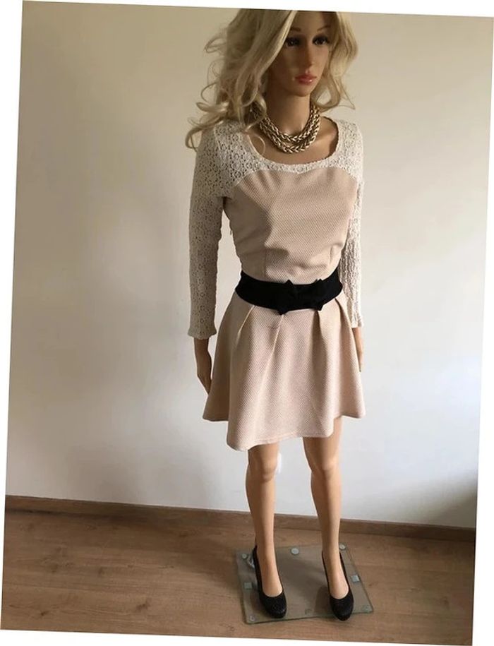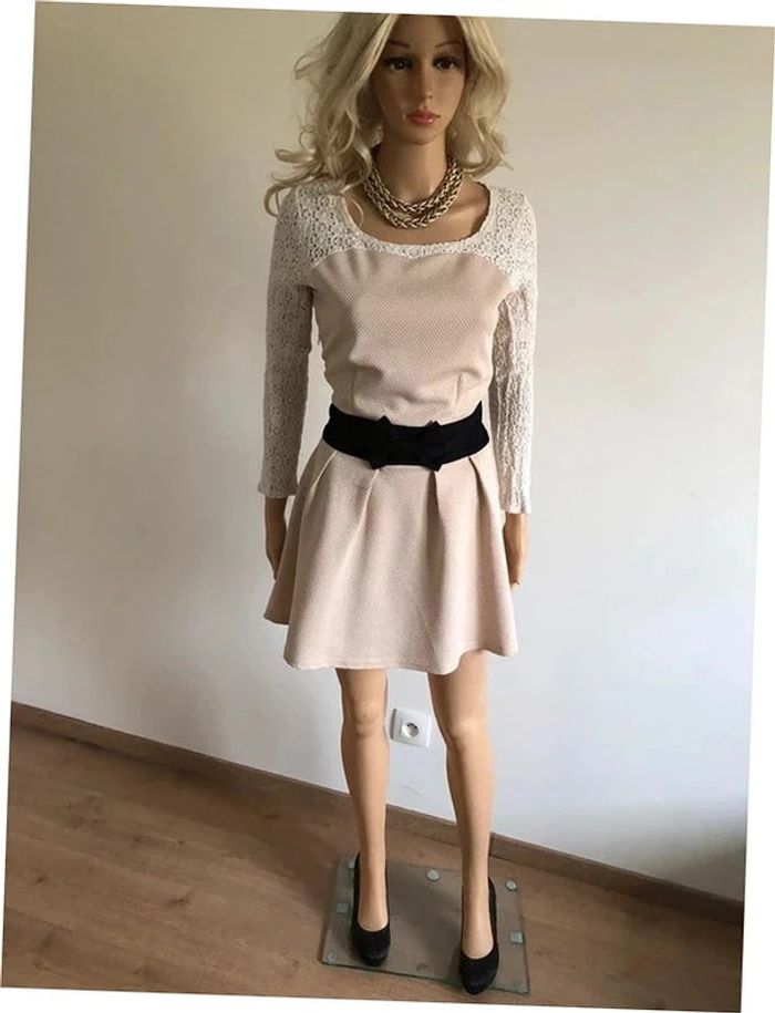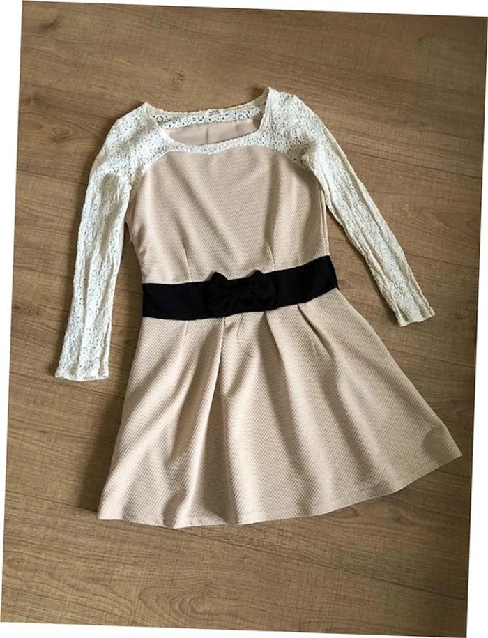 Robe beige et noire à manches longues avec dentelle Molly Bracken taille 2 TBE - photo numéro 1