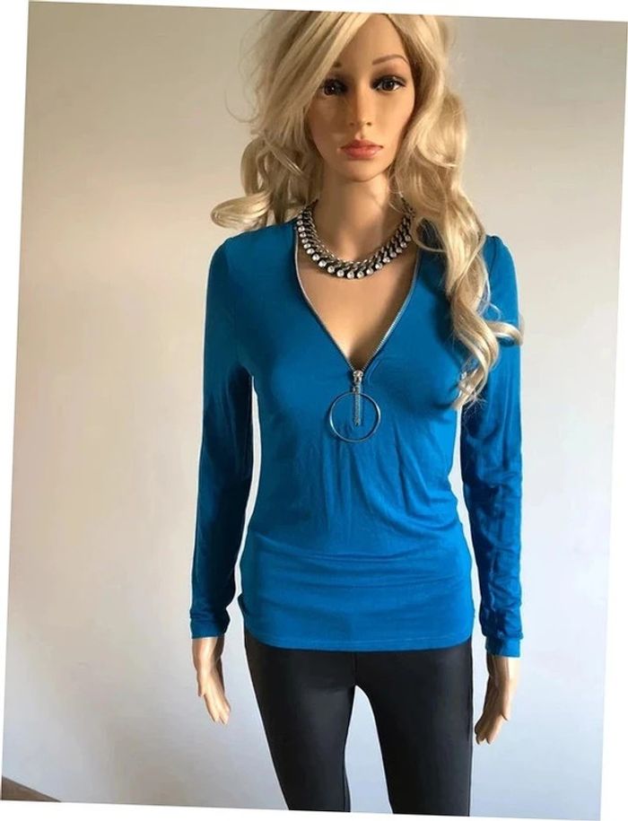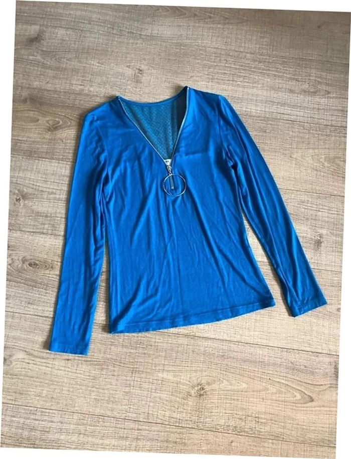 Haut bleu à manches longues Morgan taille M TBE - photo numéro 1