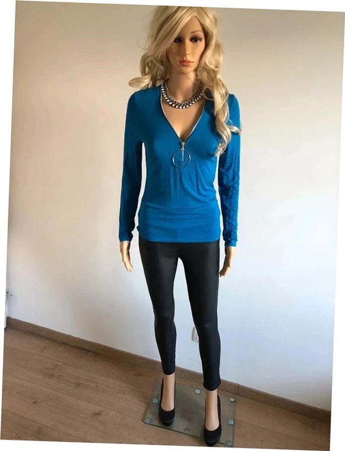 Haut bleu à manches longues Morgan taille M TBE - photo numéro 5
