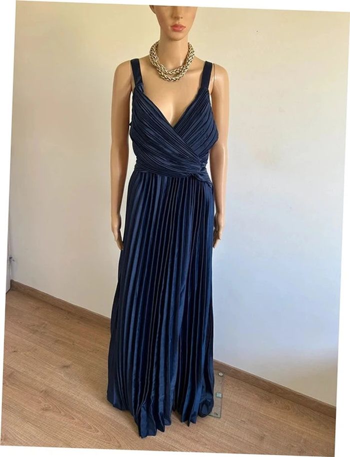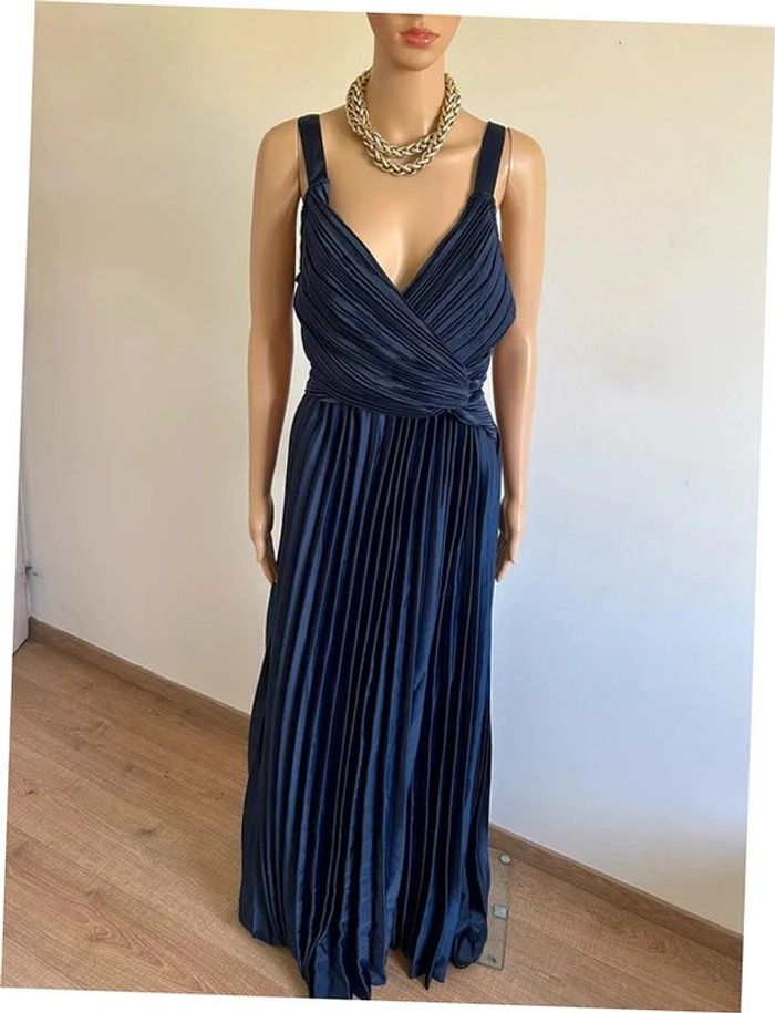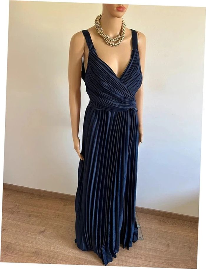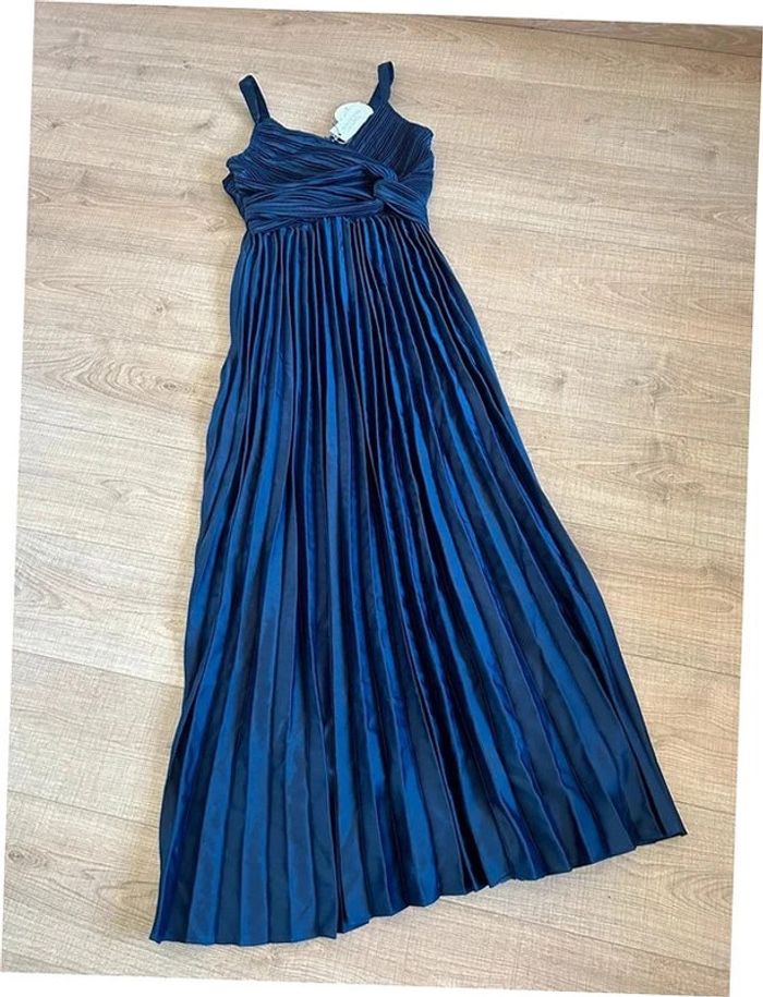 Robe longue plissée bleue marine neuve Boohoo taille 40 - photo numéro 1