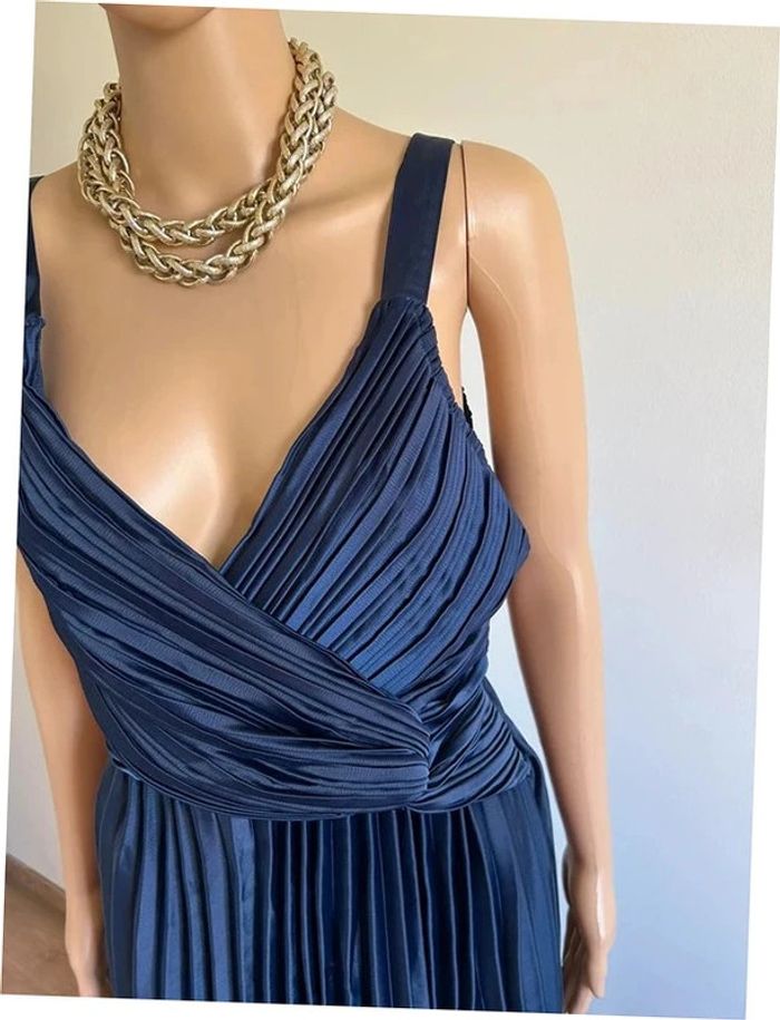 Robe longue plissée bleue marine neuve Boohoo taille 40 - photo numéro 2