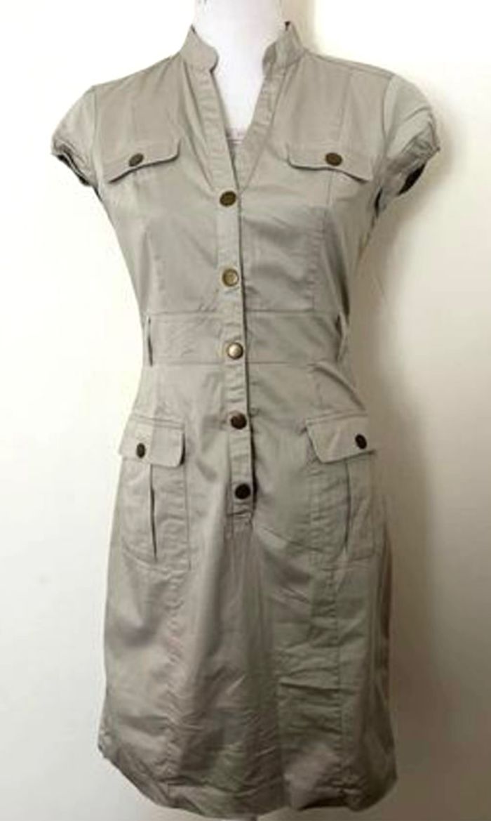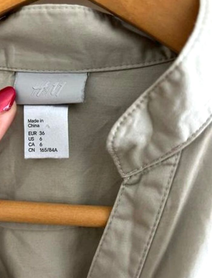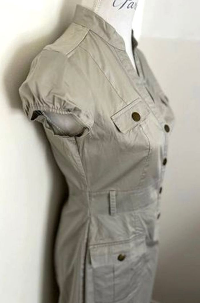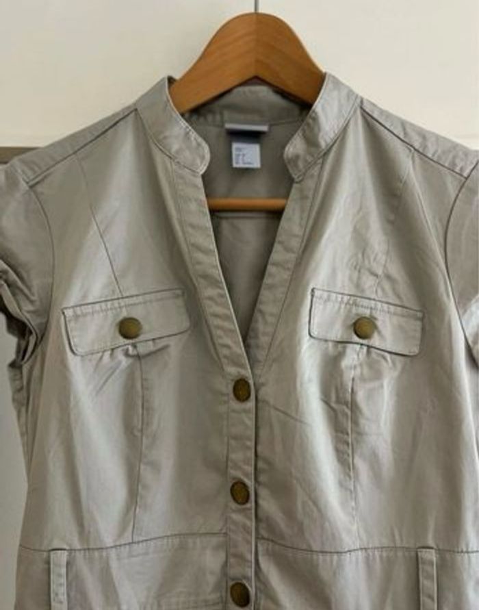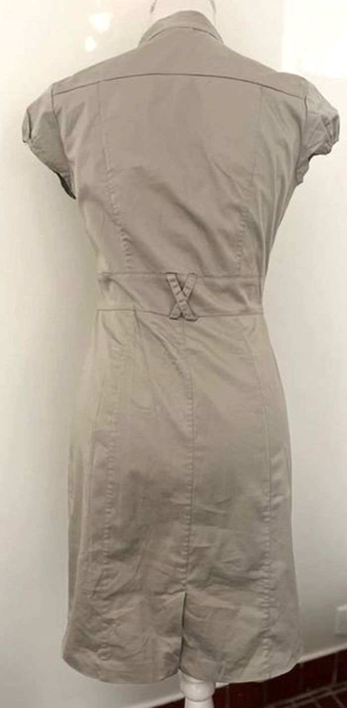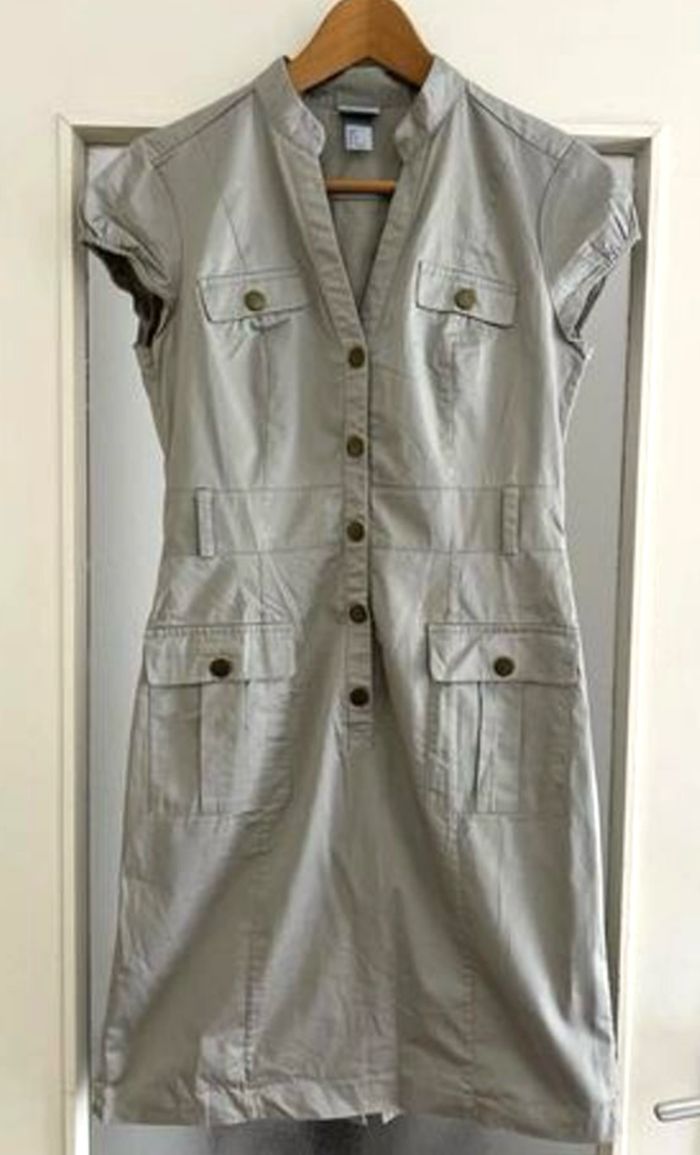 Robe chic H&M Style modèle hôtesse de l'air Colorie beige Taille 36 Avec boutons pression sur le devant et les poches Vendue sans ceinture Vous pouvez utiliser différentes ceintures pour ce modèle de robe 91 cm de longueur 97 % coton 3 % elasthanne Maison non fumeur et sans animaux 📩Je réponds rapidement aux messages 📦Envoi rapide et soigné