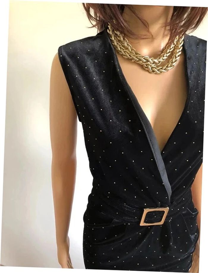 Robe noire et dorée neuve en velours sans manches Morgan taille 42 (valeur 65€) - photo numéro 15
