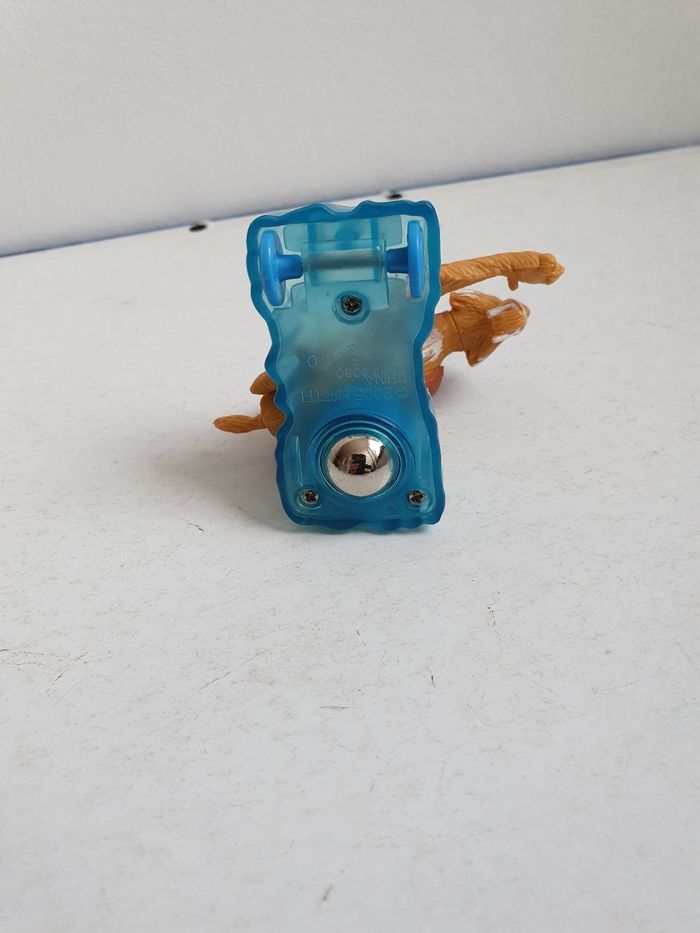 Sur socle roulant (1 bille et 2 roues) La patte levée est articulée en appuyant sur la bosse du dos. Se détache du socle Dimension 6x6x3 cm