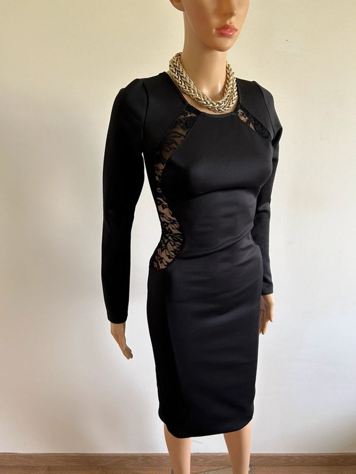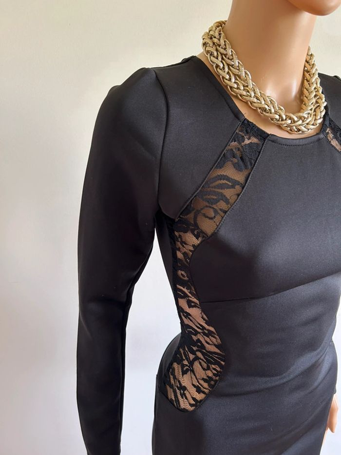 Robe noire neuve mi longue avec dentelle Chic by Lirette taille S - photo numéro 1