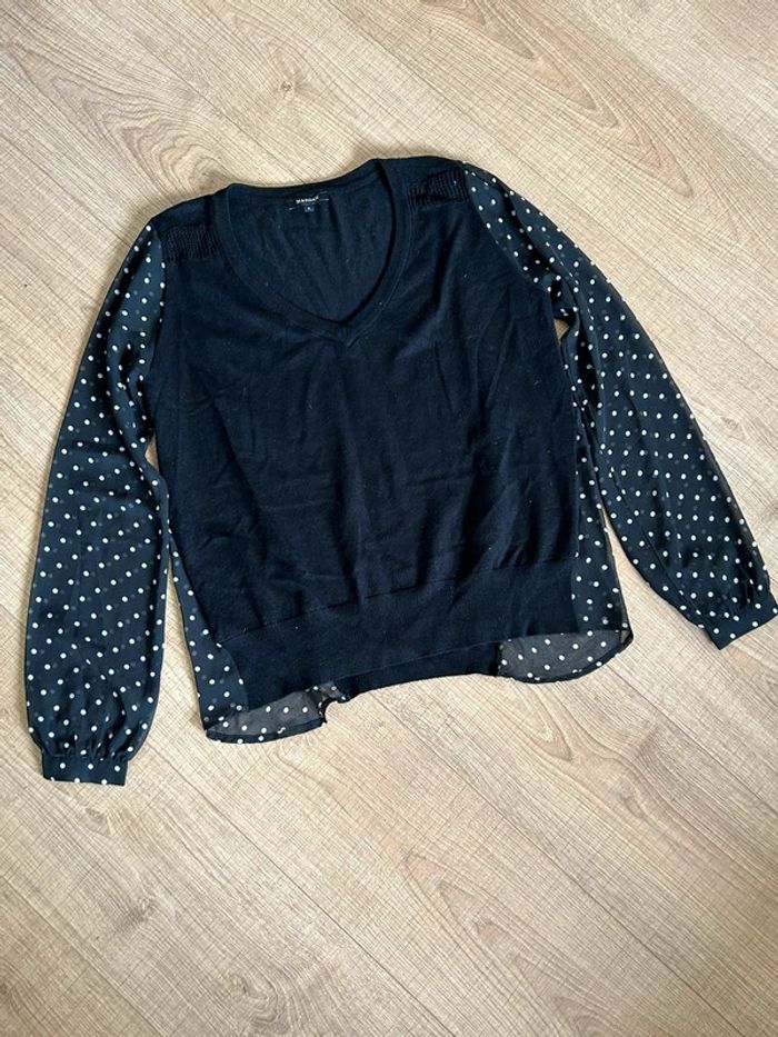 Pull noir à manches longues avec pois blancs Morgan taille S TBE - photo numéro 1