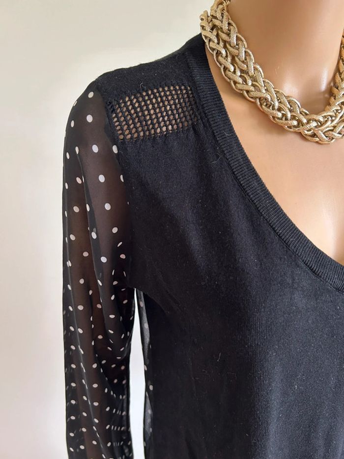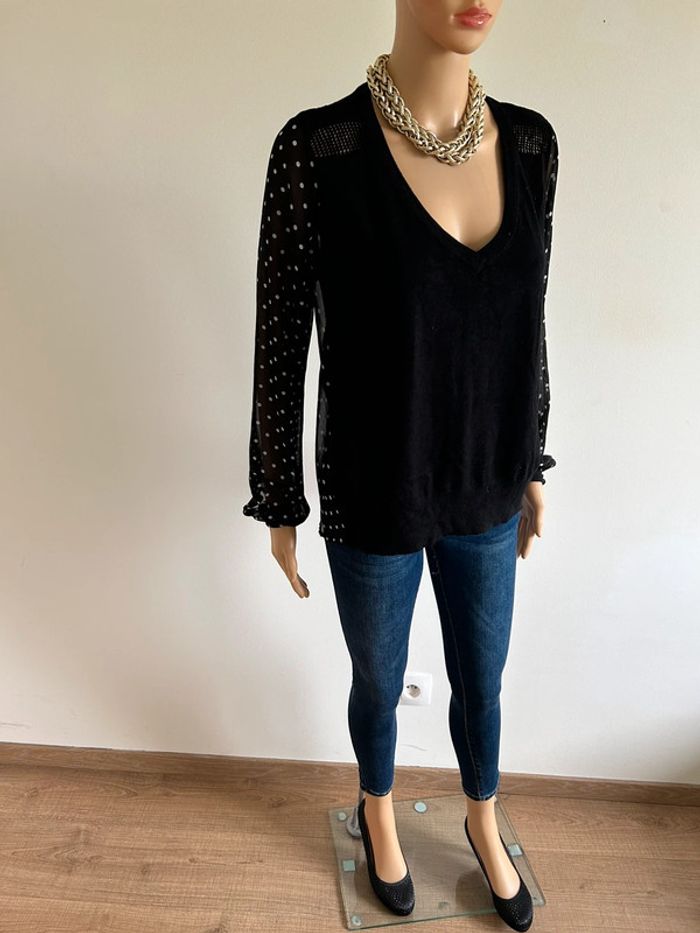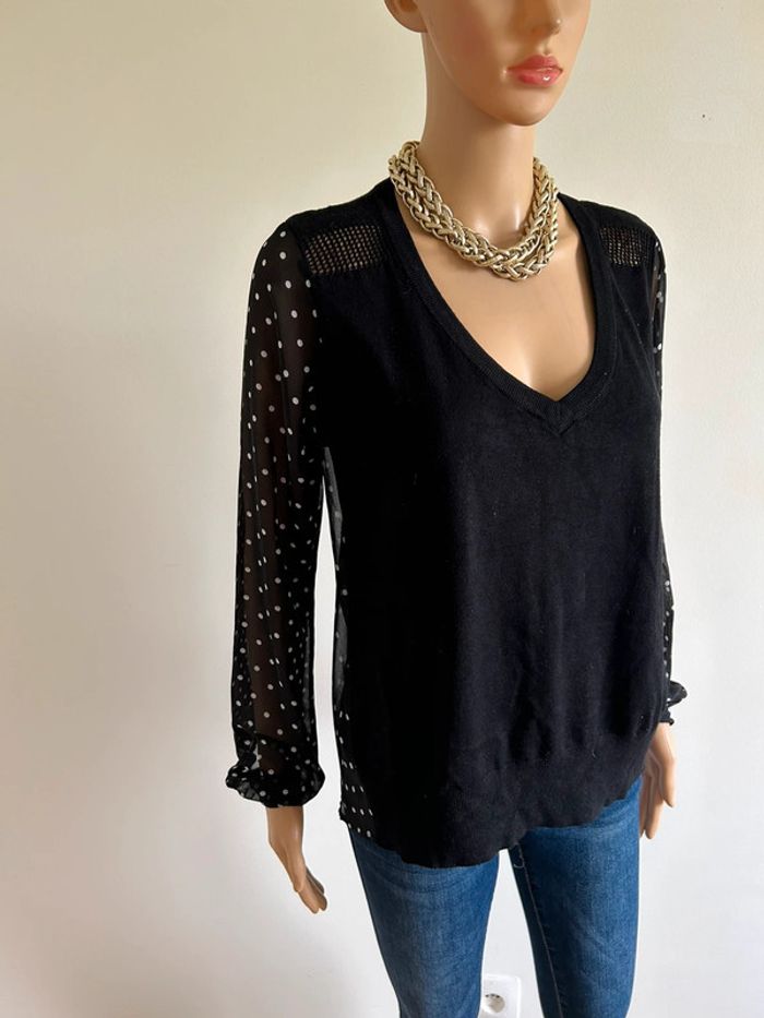 Pull noir à manches longues avec pois blancs Morgan taille S TBE