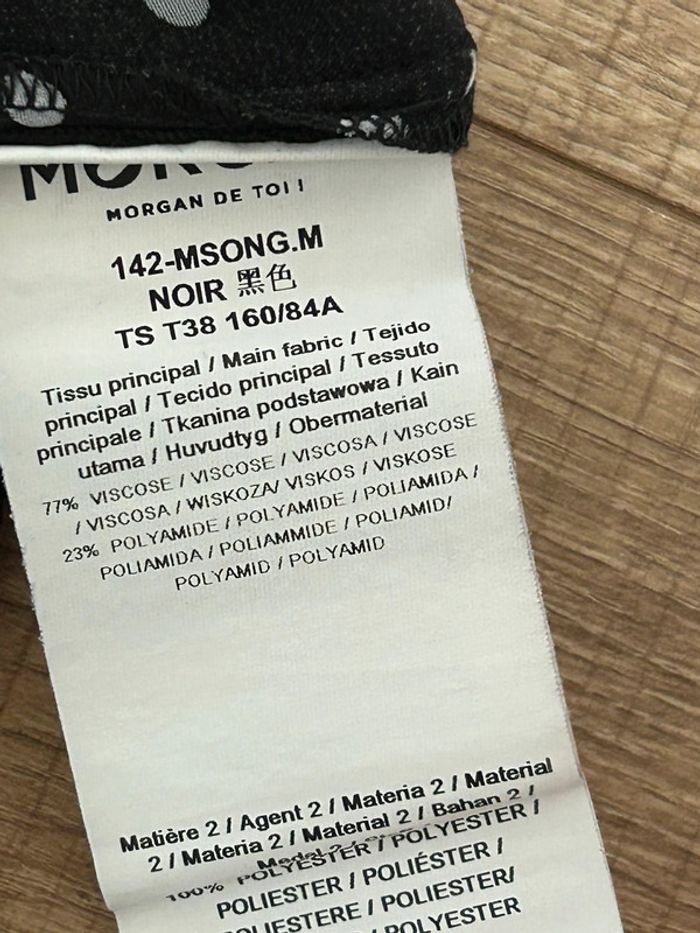 Joli pull noir à manches longues, avec pois blancs, de marque Morgan. Taille S. Porté quelques fois, en très bon état. aisselle à aisselle 49 cms et plus épaule à épaule 37 cms et plus longueur manches 63 cms taille 48 cms et plus longueur depuis épaule 58 cms à 62 cms Le tissu est extensible 77% viscose et 23% polyamide Le prix reste négociable dans la limite du raisonnable. Un petit cadeau dans le colis 🌸 (Boîte 2)