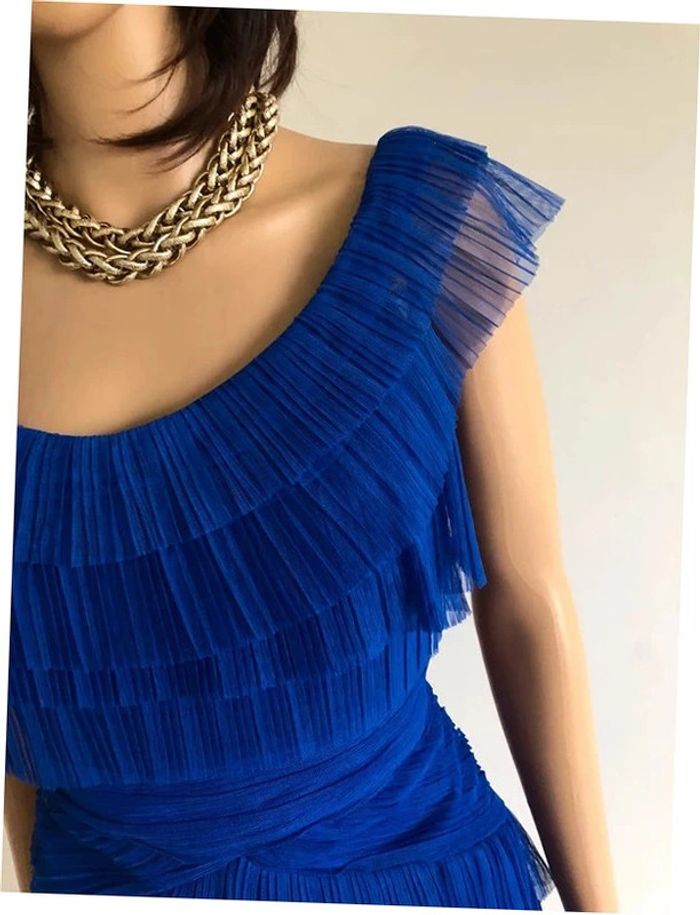 Magnifique robe bleue à volants, sans manches, de marque Morgan. Taille S. Elle est neuve avec étiquette (valeur 85€). aisselle à aisselle 44 cms taille 36 cms longueur depuis épaule 80 cms Le tissu est légèrement extensible 100% polyester Le prix reste négociable dans la limite du raisonnable. Un petit cadeau dans le colis.
