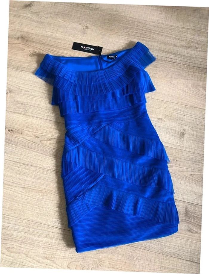 Robe bleue neuve sans manches avec volants Morgan taille S (valeur 85€) - photo numéro 1