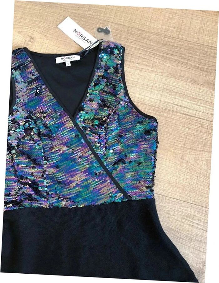 Robe noire neuve sans manches avec sequins Morgan taille S (valeur 85€) - photo numéro 7