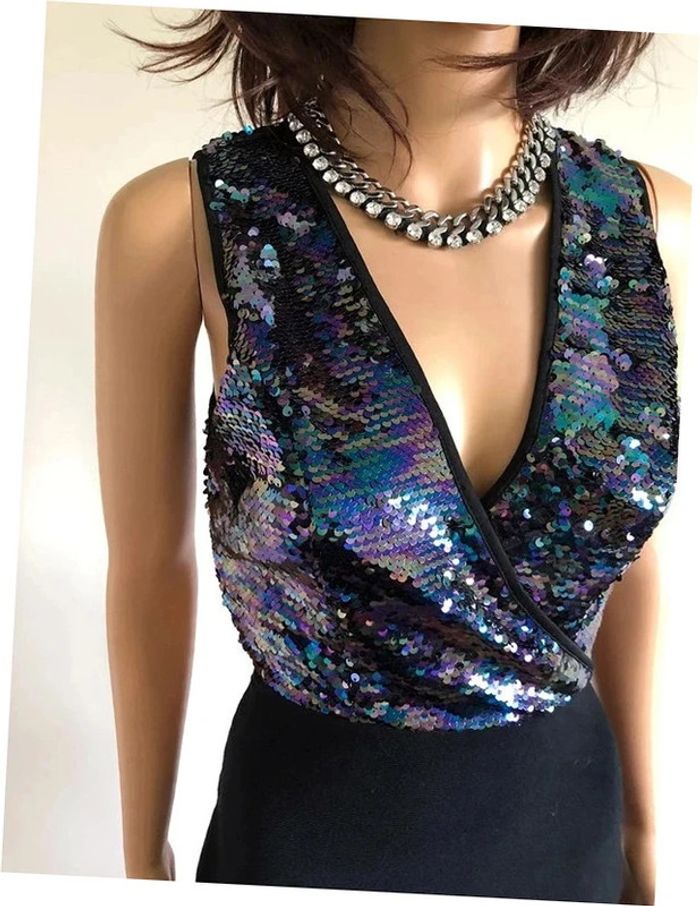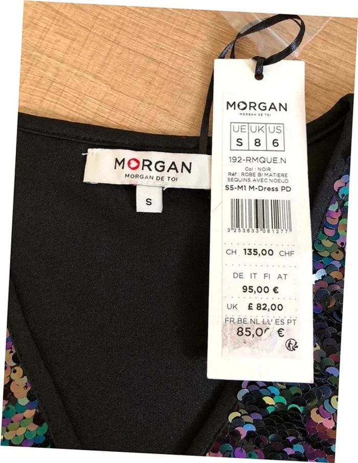 Magnifique robe bi matière, sans manches, avec sequins, de marque Morgan. Taille S. Elle est neuve avec étiquette (valeur 85€). aisselle à aisselle 41 cms taille 33 cms à 37 cms longueur depuis épaule 88 cms 70% viscose et 30% polyamide Le prix reste négociable dans la limite du raisonnable. Un petit cadeau dans le colis. (Boîte 37)
