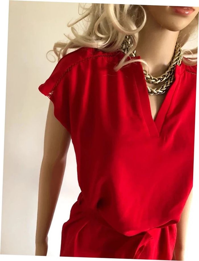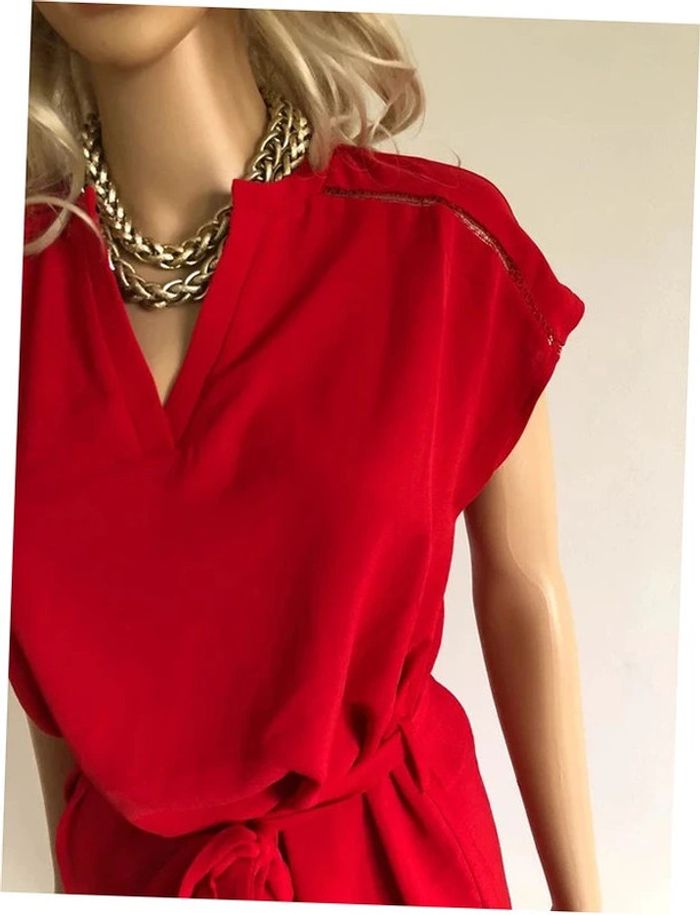 Jolie robe rouge casual à manches courtes, de marque LolaLiza. Taille 34. Elle est neuve avec étiquette (valeur 40€). Jamais portée car trop juste pour moi. aisselle à aisselle 47 cms taille 48 cms longueur depuis épaule 90 cms 100% polyester Le prix reste négociable dans la limite du raisonnable. Un petit cadeau dans le colis.