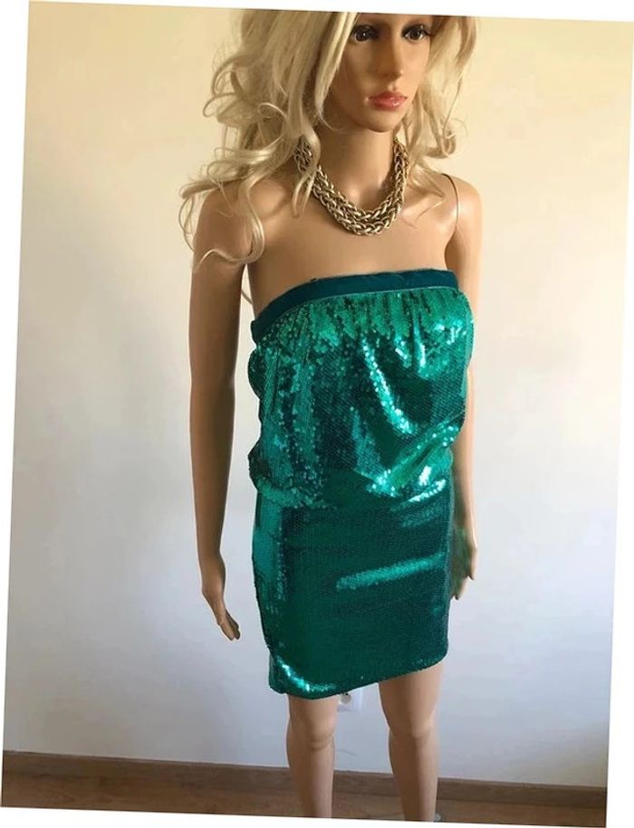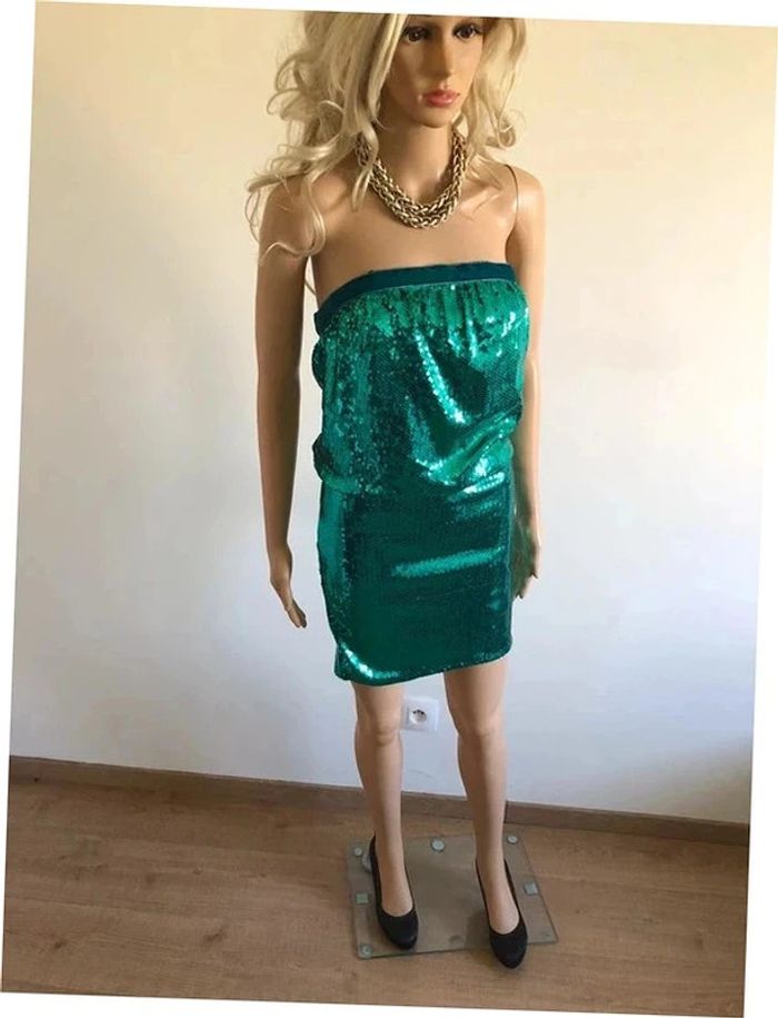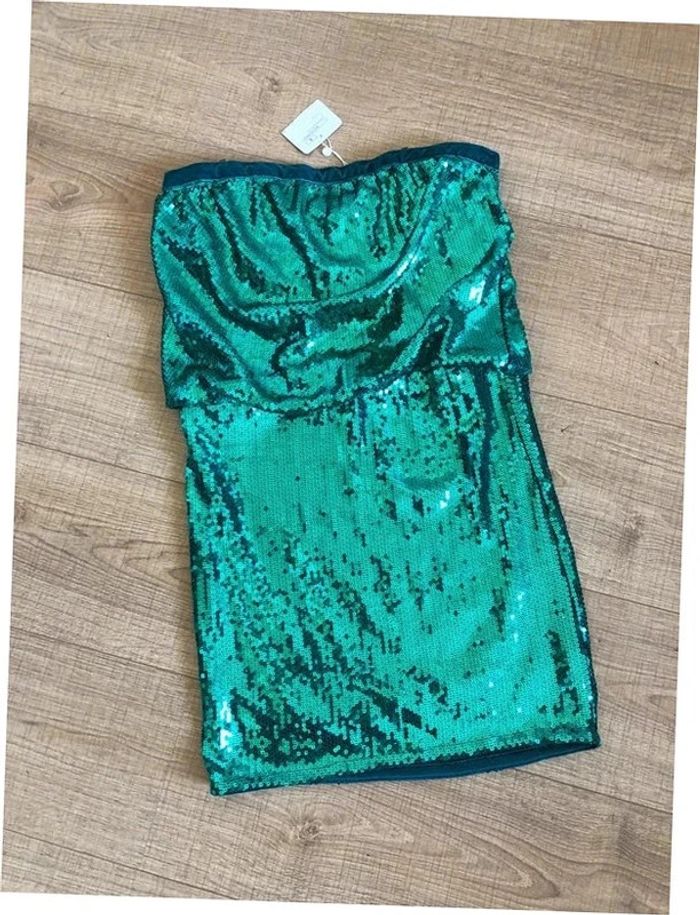 Robe bustier verte neuve en sequins Naf Naf taille S - photo numéro 1