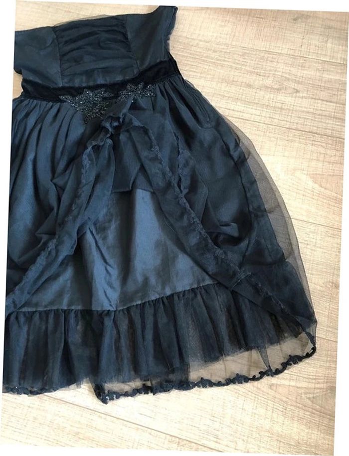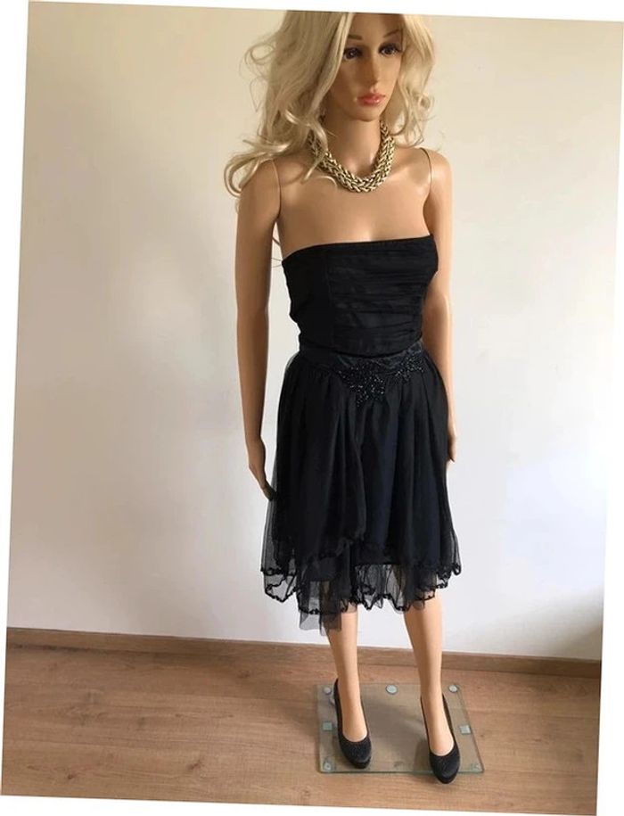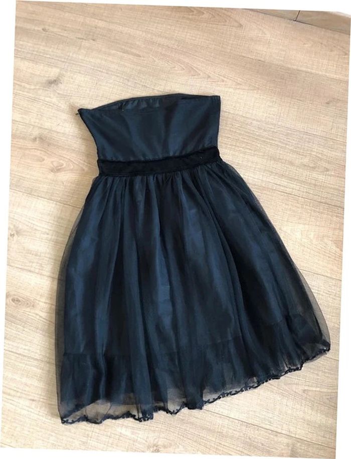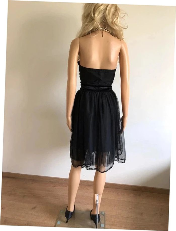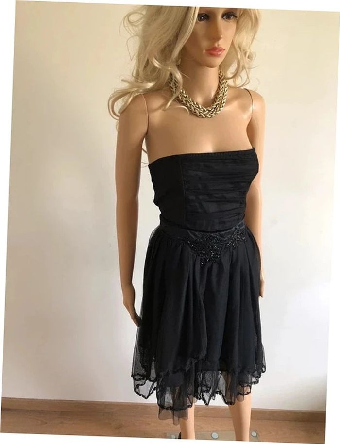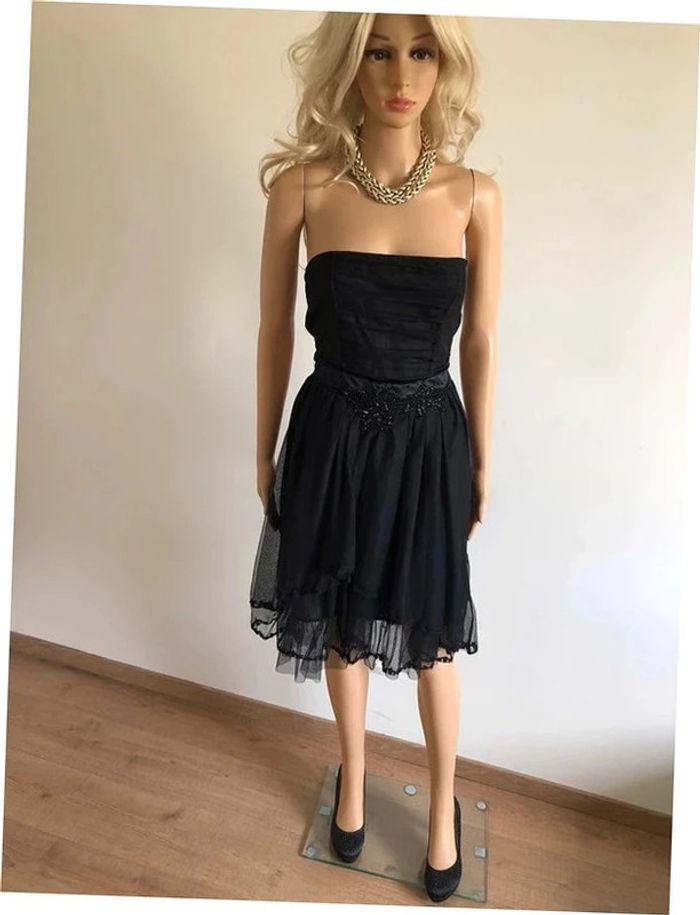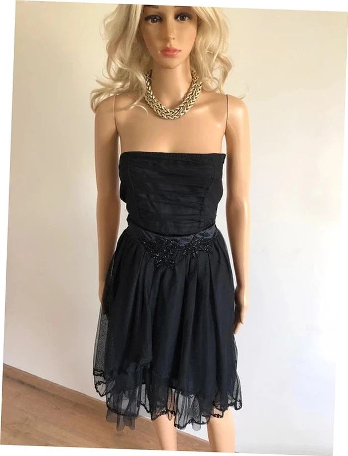 Magnifique robe noire bustier avec strass au niveau de la taille, de marque Naf Naf.