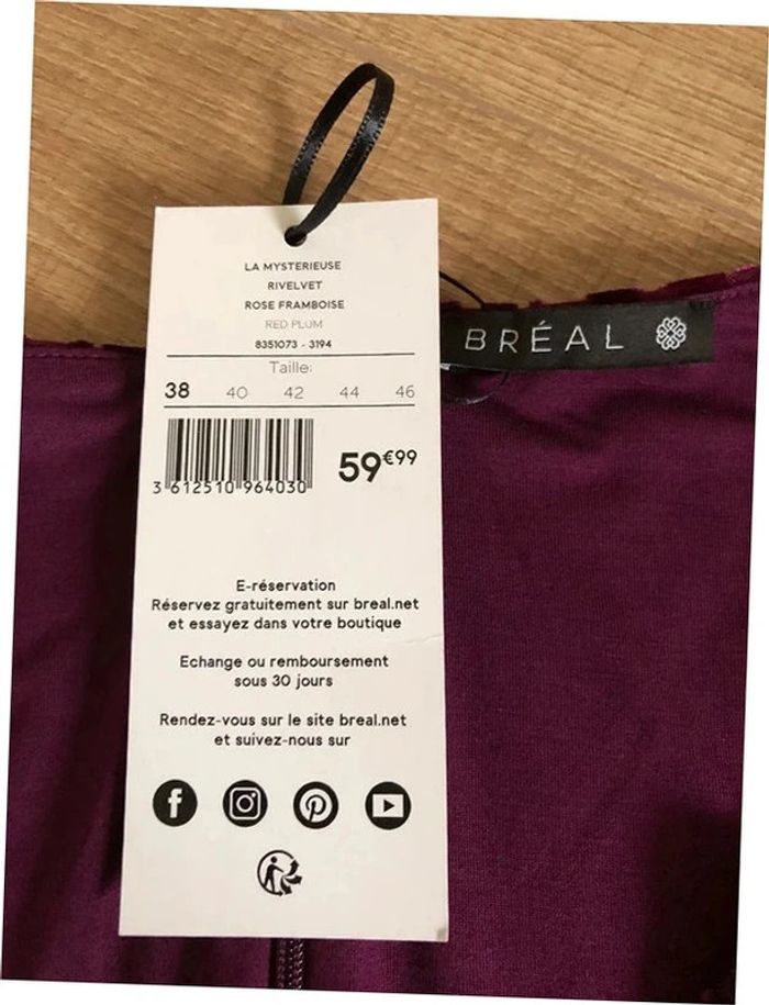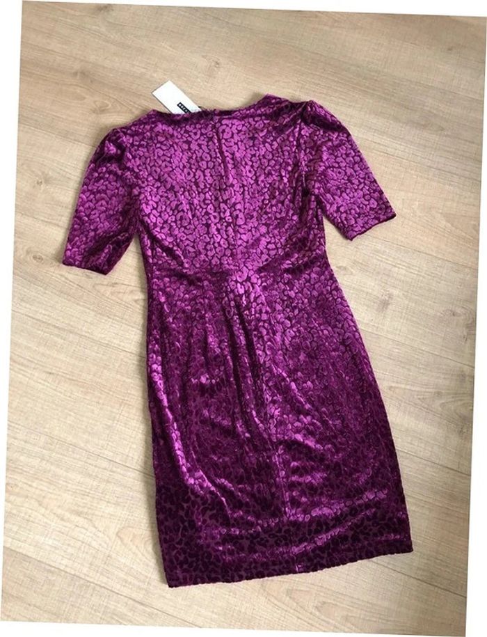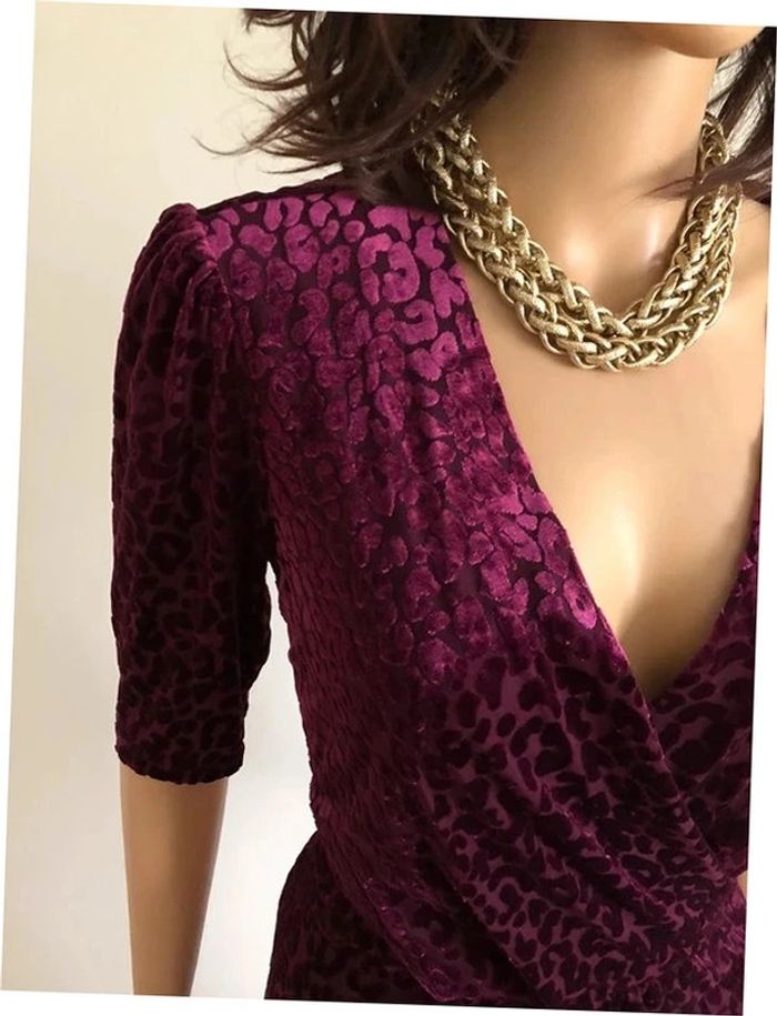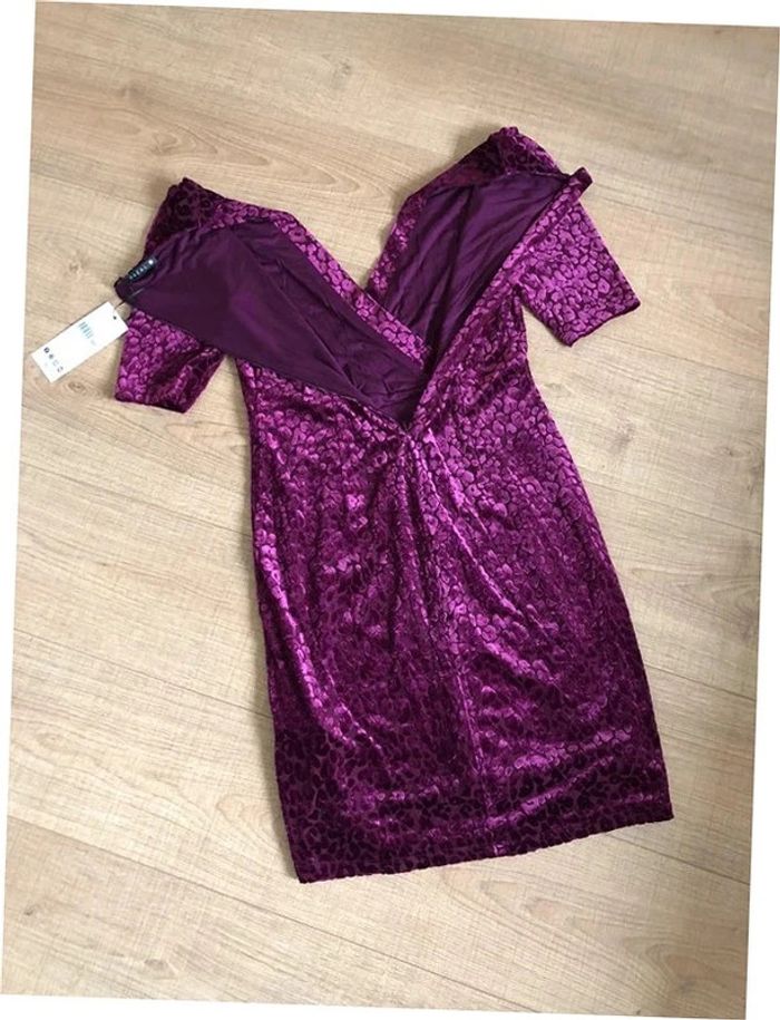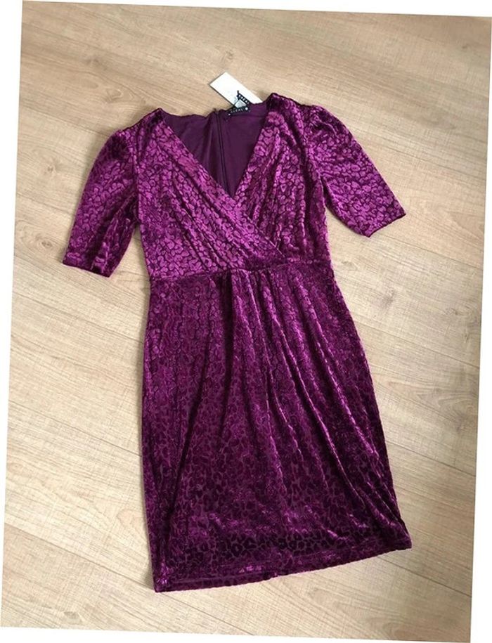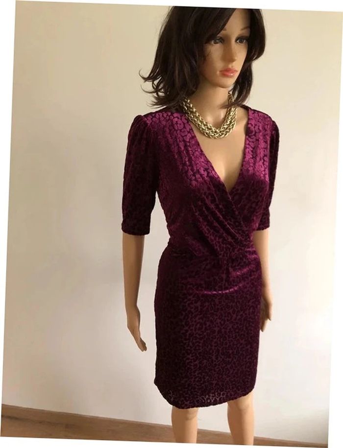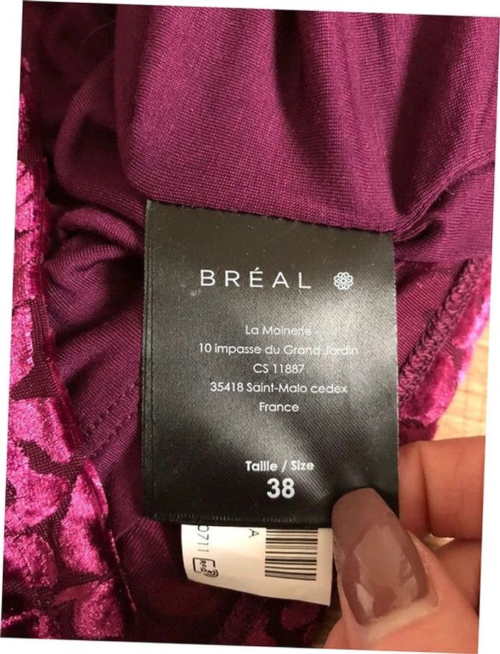 Magnifique robe violette en velours à manches courtes, de marque Breal.