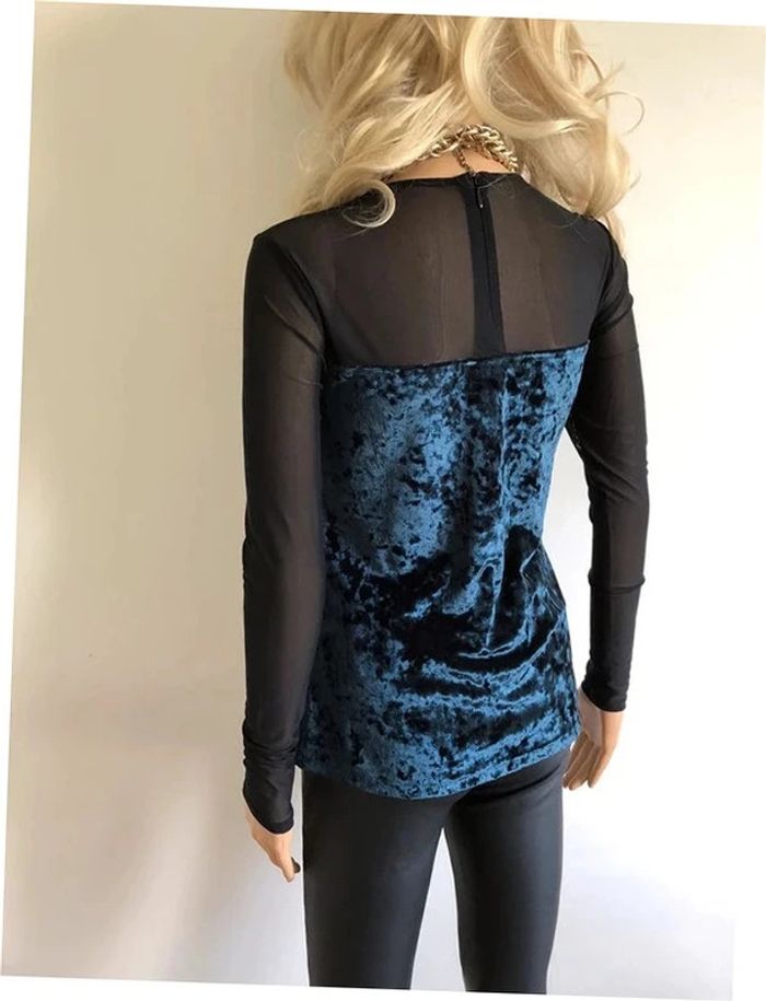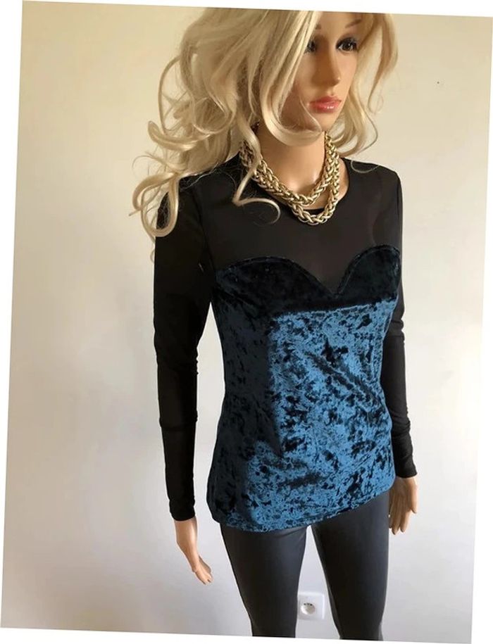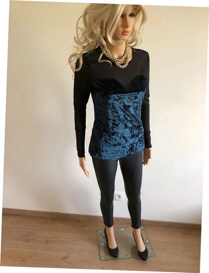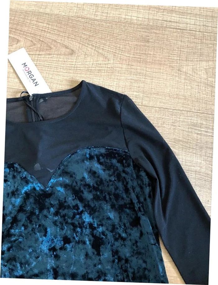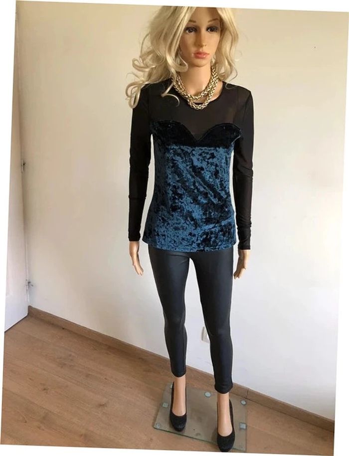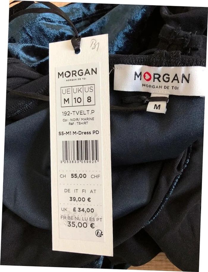 Magnifique haut noir et bleu à manches longues, de marque Morgan. Taille M. Il est neuf avec étiquette (valeur 35€). aisselle à aisselle 44 cms épaule à épaule 38 cms longueur manches 60 cms taille 42 cms longueur depuis épaule 62 cms Le tissu est extensible 95% polyester et 5% elasthanne Le prix reste négociable dans la limite du raisonnable. Un petit cadeau dans le colis.