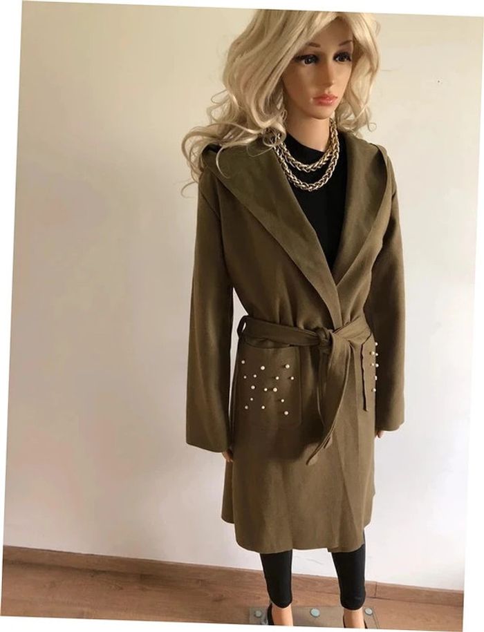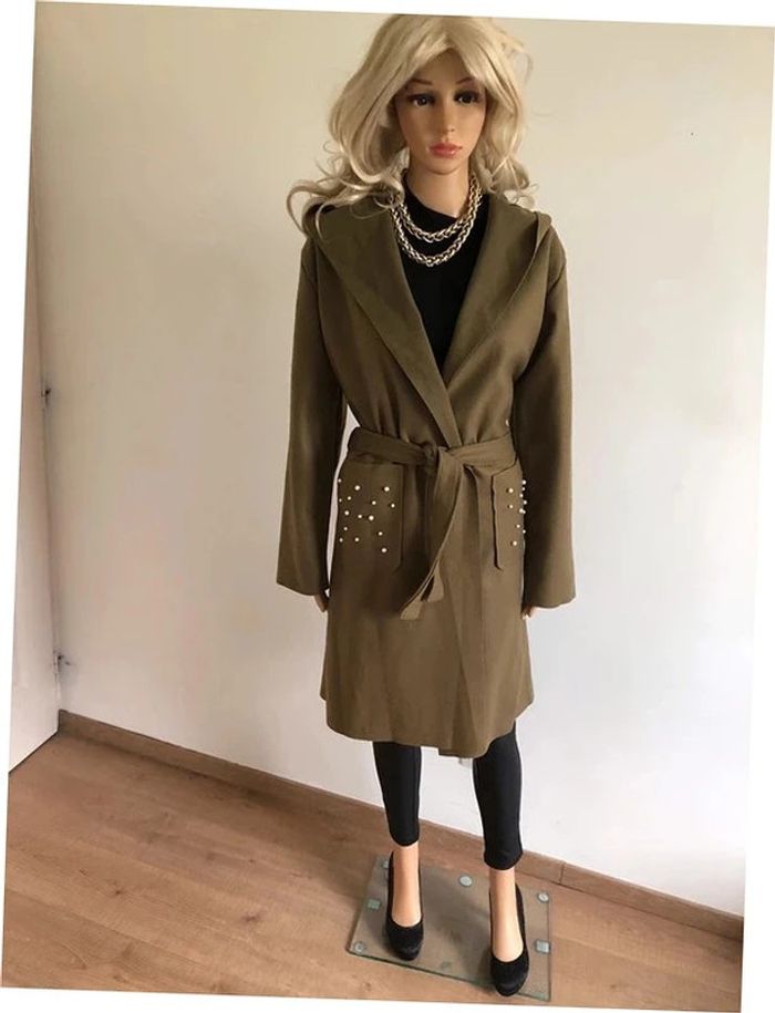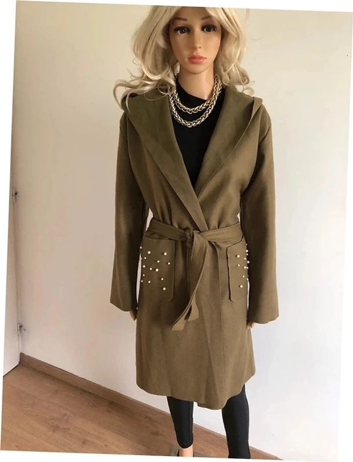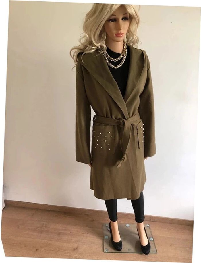 Manteau mi long kaki neuf taille unique - photo numéro 3