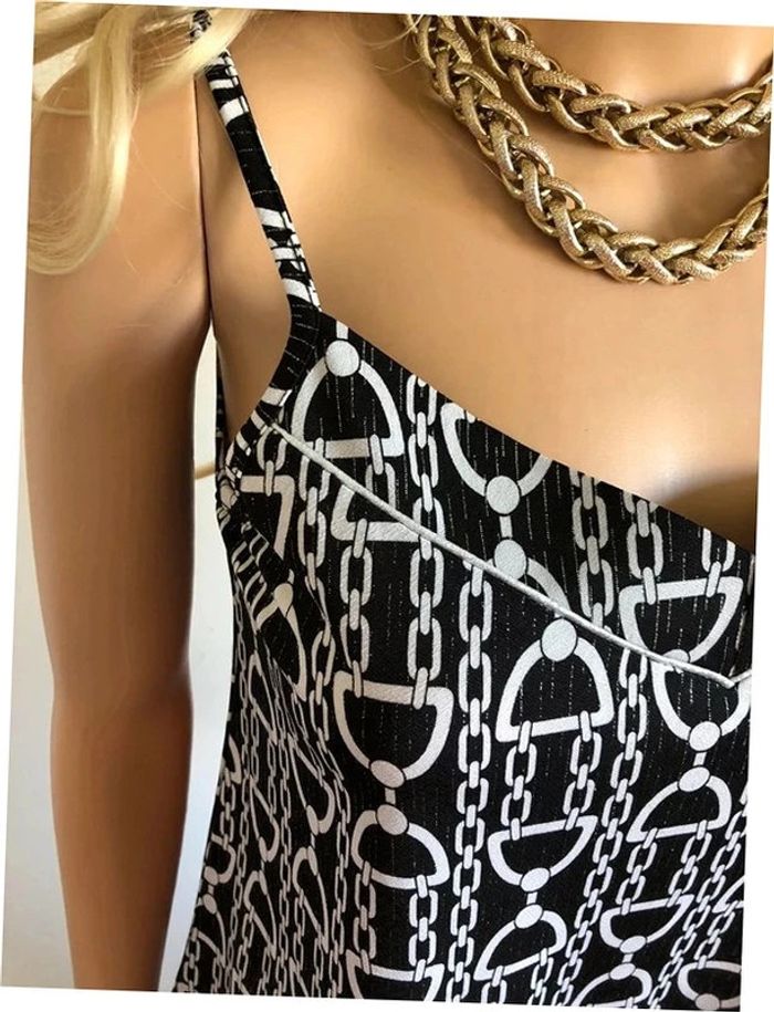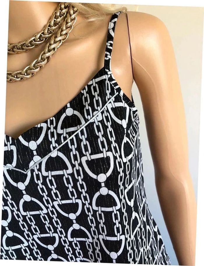 Joli top à bretelles noir et blanc, avec liserés argentés, de marque Morgan. Taille XS. Il est neuf avec étiquette (valeur 30€). aisselle à aisselle 42 cms et plus taille 43 cms longueur depuis épaule 53 cms Le tissu est extensible 95% polyester et 5% elasthanne Le prix reste négociable dans la limite du raisonnable. Un petit cadeau dans le colis.