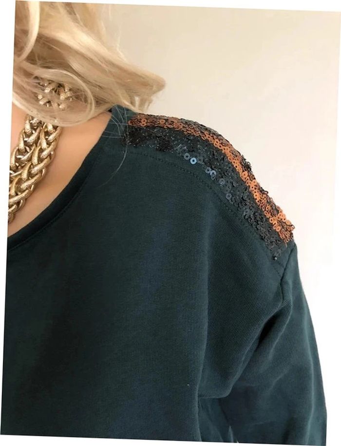 Robe sweat verte foncée avec sequins Esprit taille M excellent état - photo numéro 5
