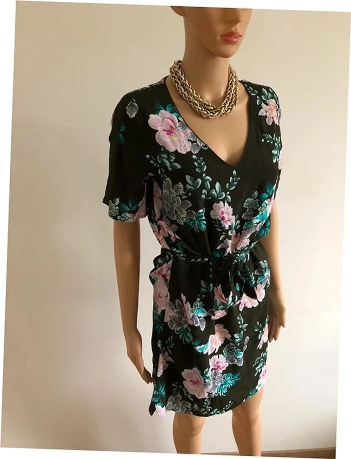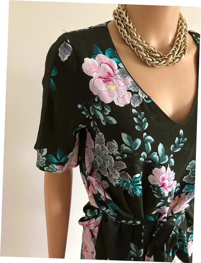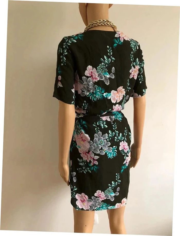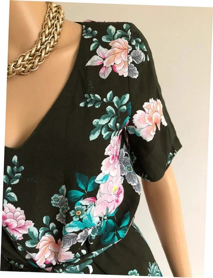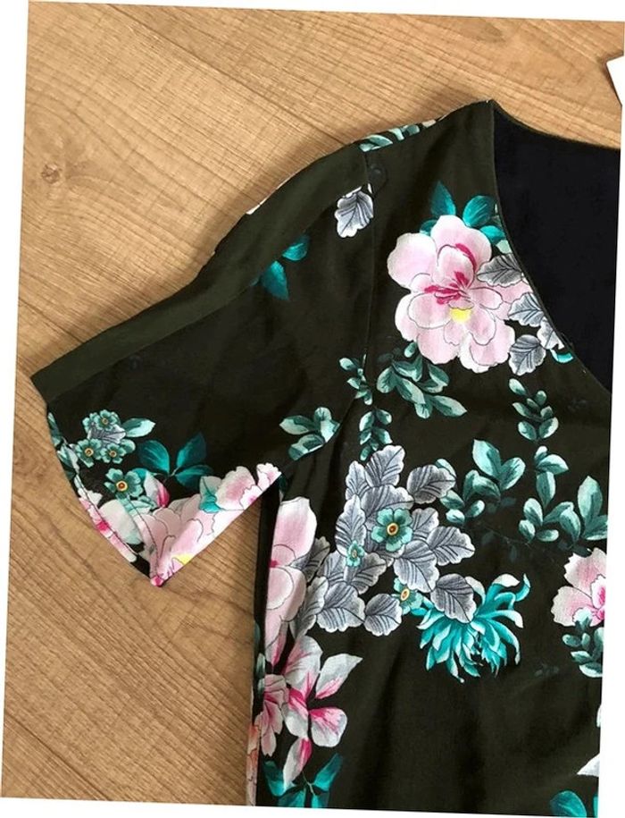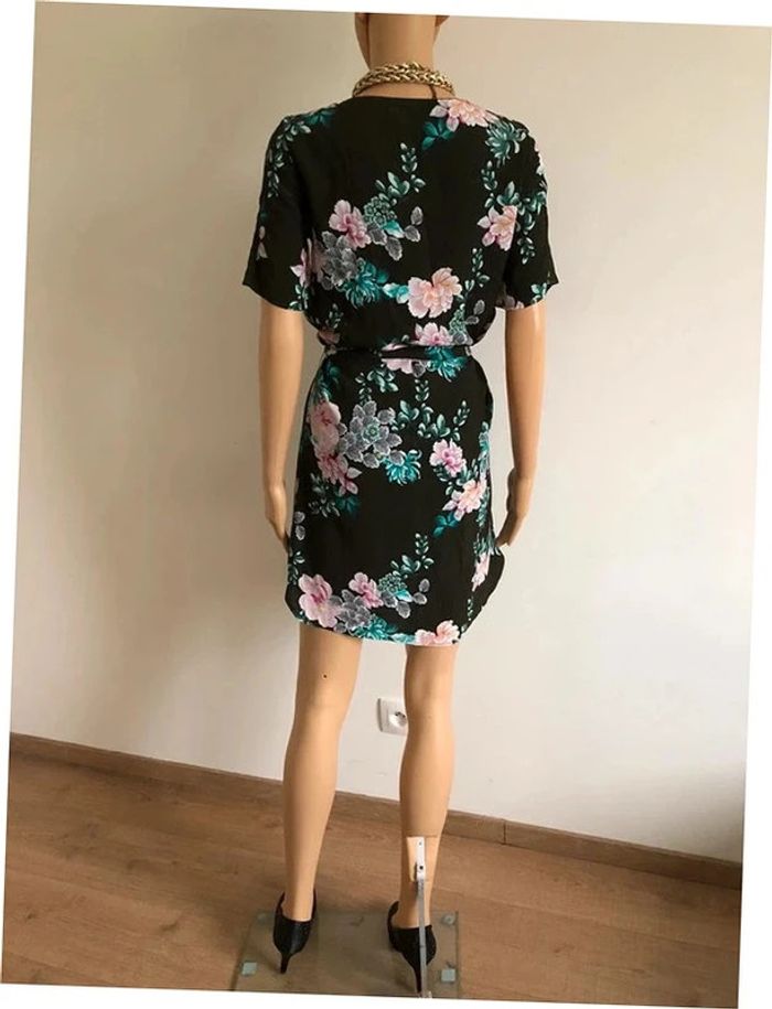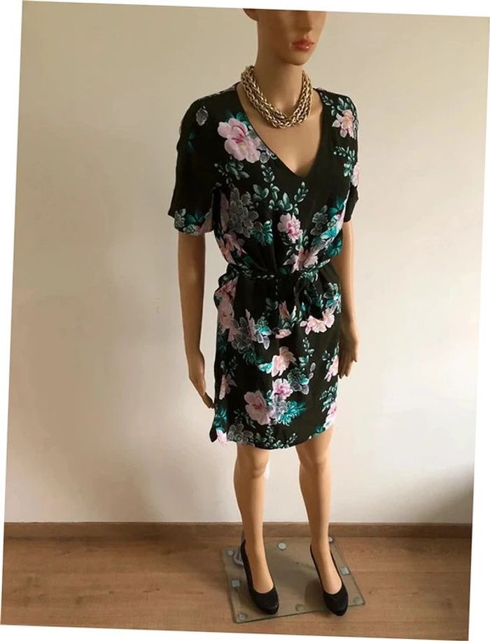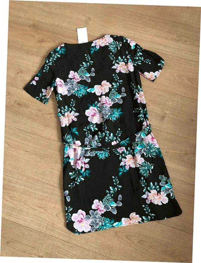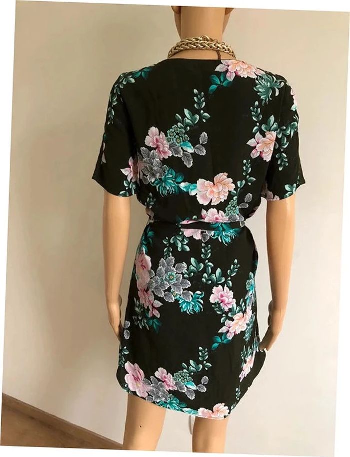 Robe verte foncée et imprimée fleurie à manches courtes Promod taille 34 jamais portée - photo numéro 10