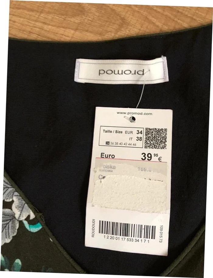 Robe verte foncée et imprimée fleurie à manches courtes Promod taille 34 jamais portée - photo numéro 14