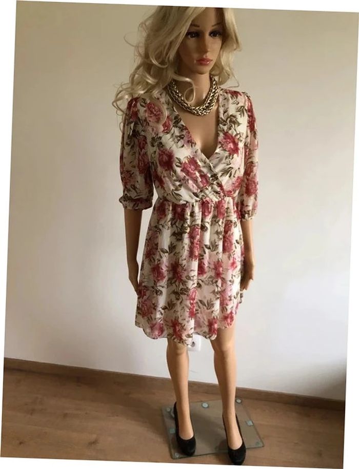 Magnifique robe beige crème avec imprimés fleuris roses, à manches courtes. Taille unique qui convient jusqu’au petit 38. Élastique au niveau de la taille. Jamais portée, état neuf. aisselle à aisselle 42 cms épaule à épaule 38 cms taille 30 cms à 43 cms longueur depuis épaule 84 cms La taille est extensible 95% polyester et 5% elasthanne Le prix reste négociable dans la limite du raisonnable. Un petit cadeau dans le colis. (Boîte 50)