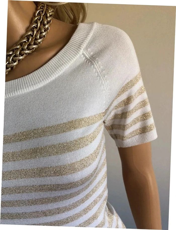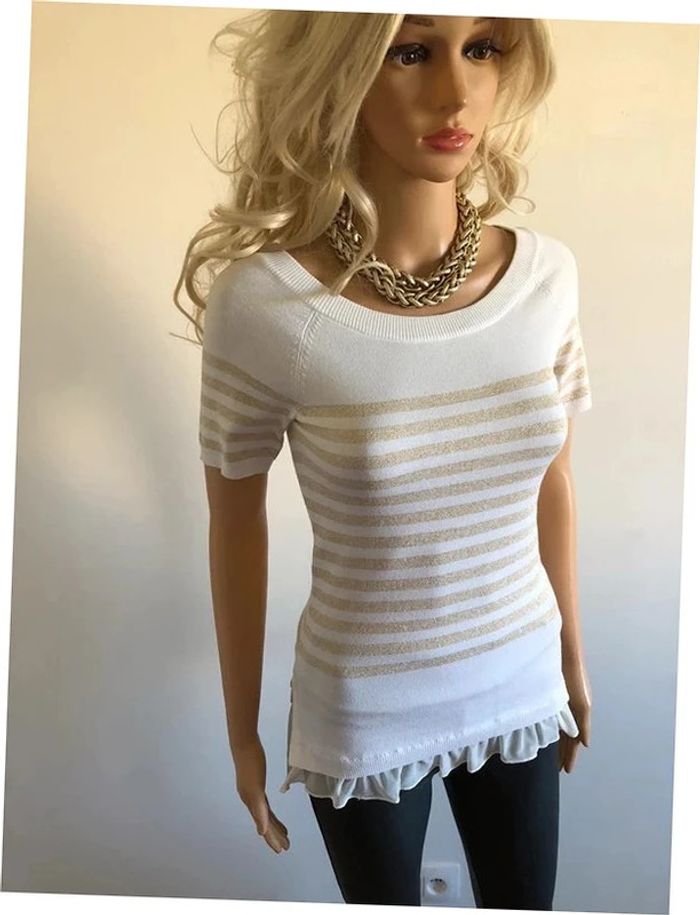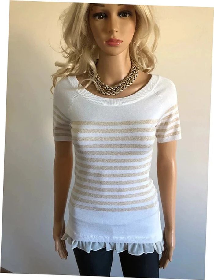 Pull blanc et doré neuf à manches courtes Morgan taille S (valeur 49€) - photo numéro 16