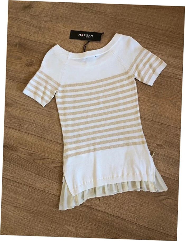 Pull blanc et doré neuf à manches courtes Morgan taille S (valeur 49€) - photo numéro 2