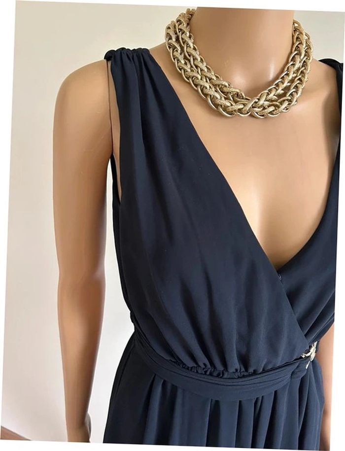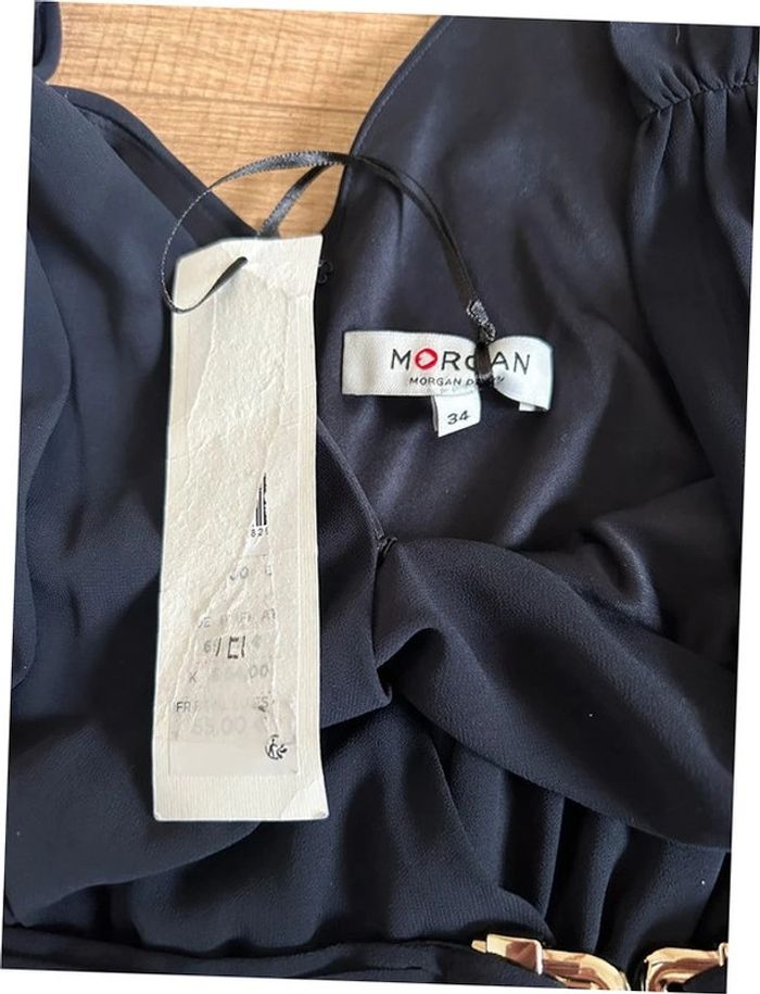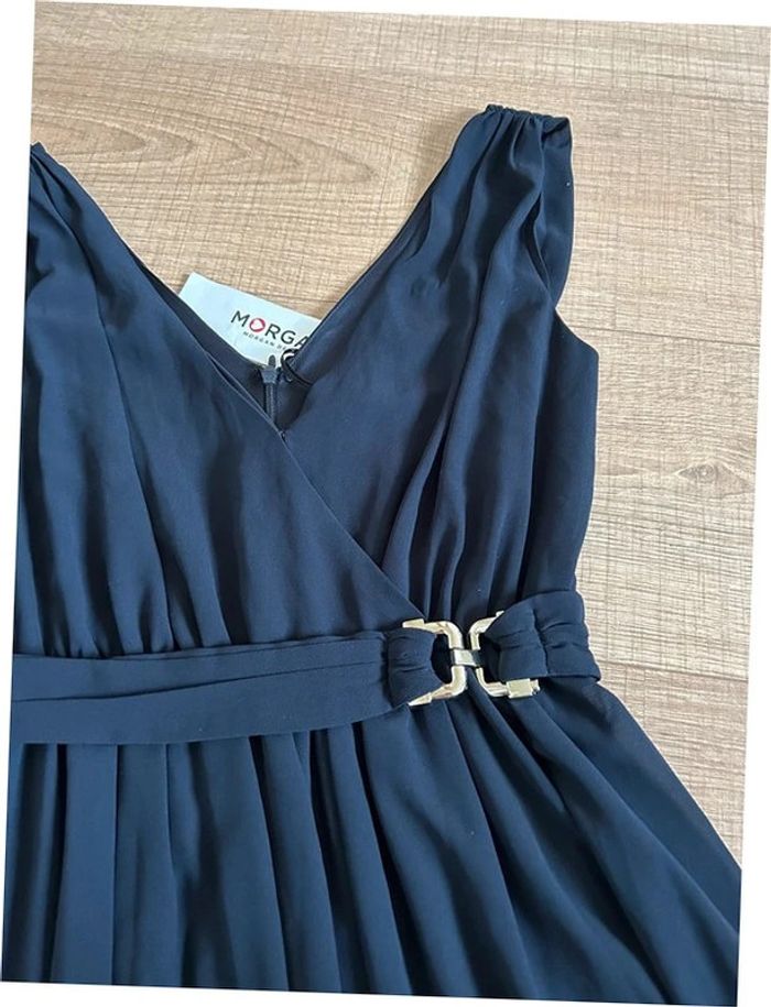 Magnifique robe bleue marine sans manches, de marque Morgan. Fermeture dans le dos. Taille 34. Elle est neuve avec étiquette. aisselle à aisselle 41 cms taille 31 cms longueur depuis épaule 93 cms 100% polyester Le prix reste négociable dans la limite du raisonnable. Un petit cadeau dans le colis 🌸 (Boîte 49)