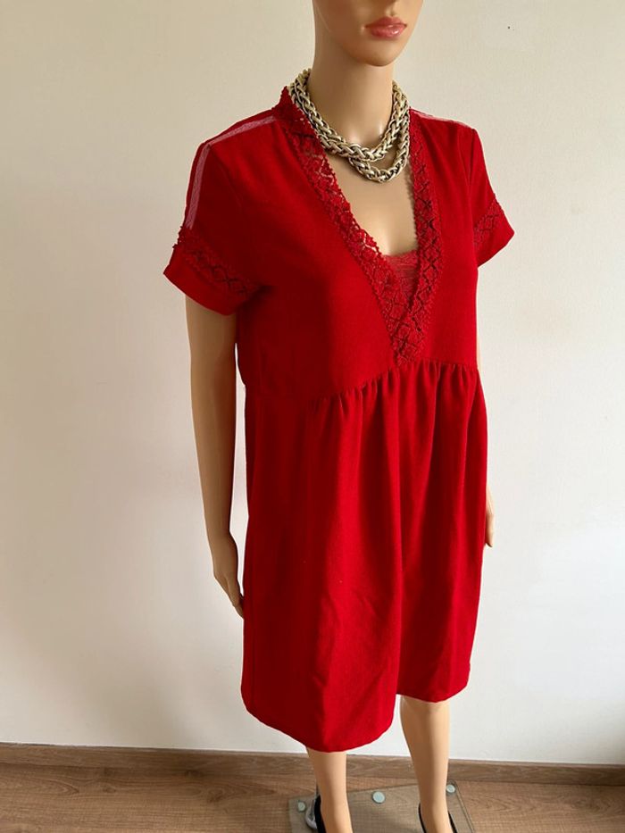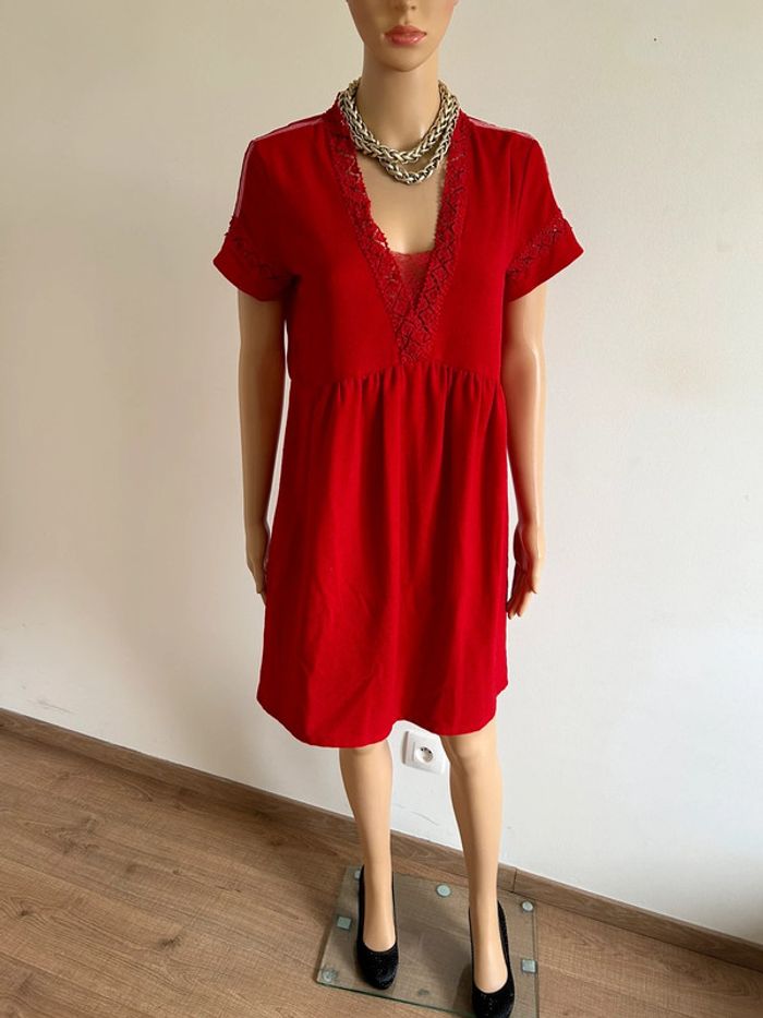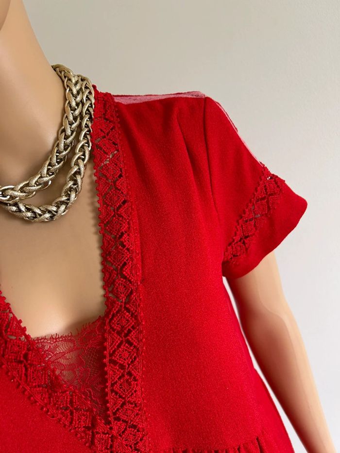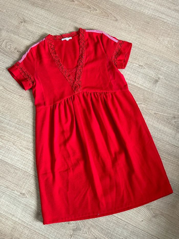 Robe rouge à manches courtes avec dentelle Grace & Mila taille S jamais portée - photo numéro 14