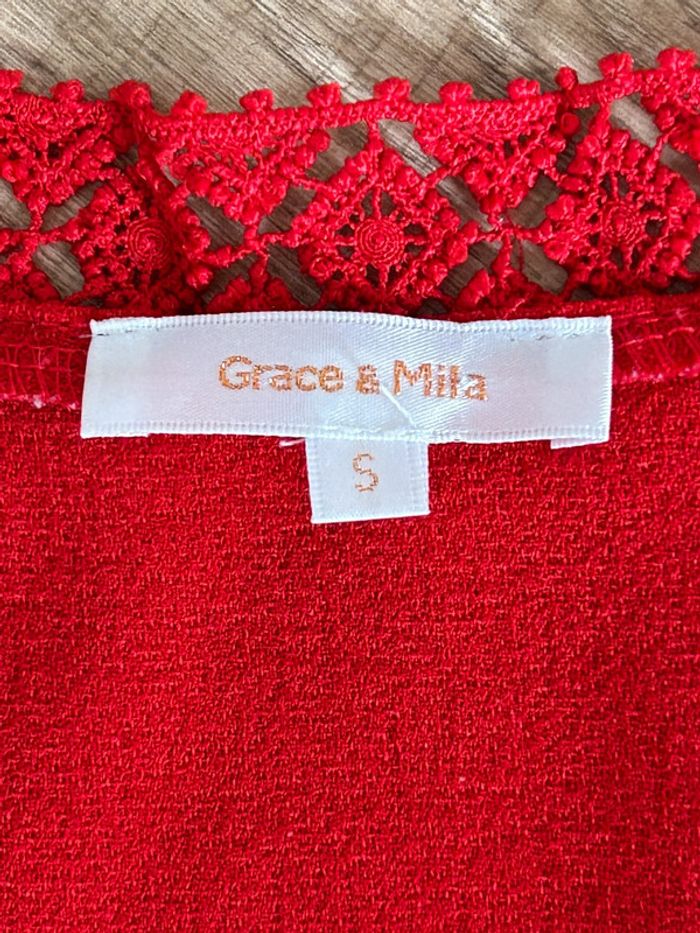 Robe rouge à manches courtes avec dentelle Grace & Mila taille S jamais portée