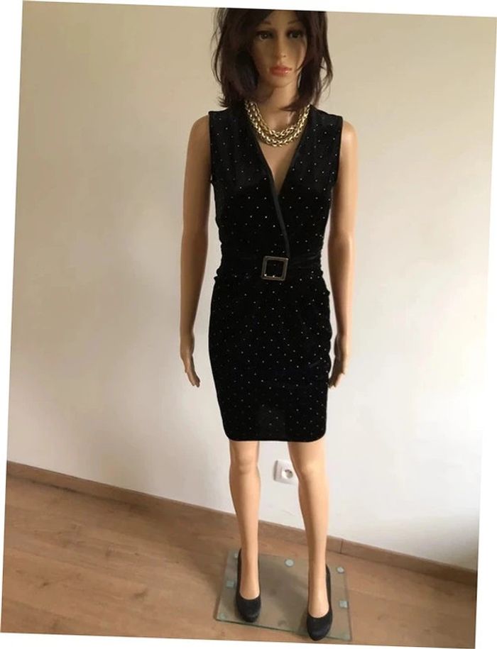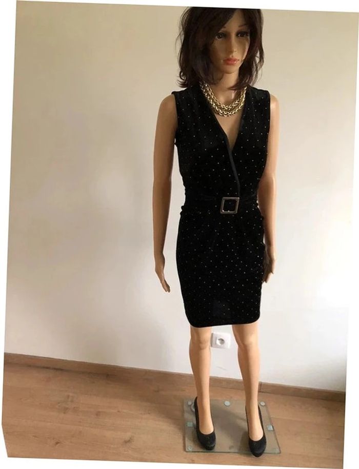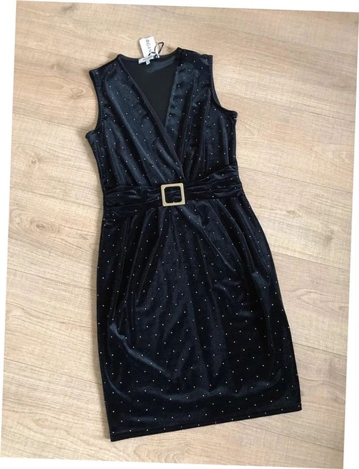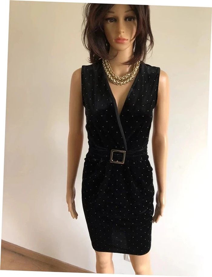 Robe noire et dorée neuve en velours sans manches Morgan taille 36 - photo numéro 2
