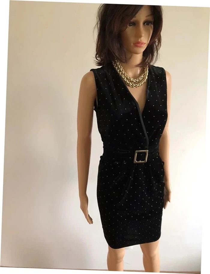 Robe noire et dorée neuve en velours sans manches Morgan taille 36 - photo numéro 5