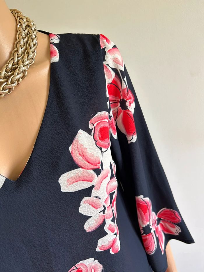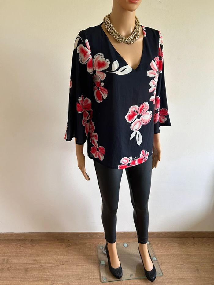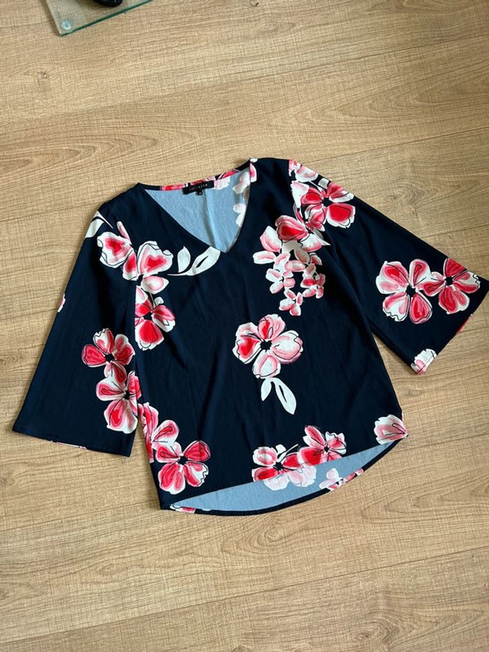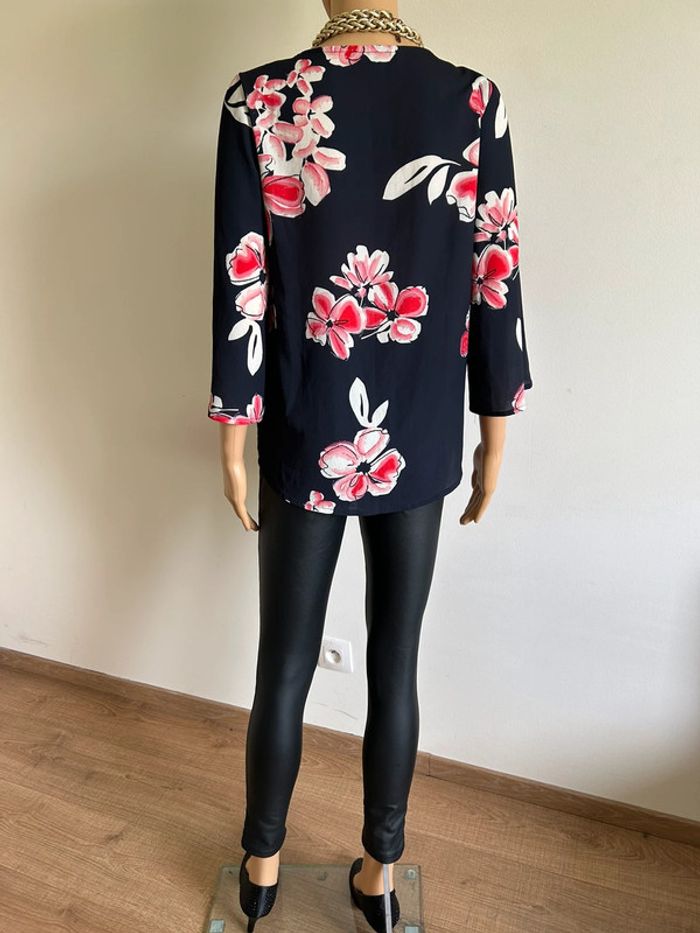 Magnifique blouse bleue marine et fleurie, avec manches 3/4, de marque LolaLiza. Taille française 36. Jamais portée, état neuf. aisselle à aisselle 46 cms épaule à épaule 37 cms longueur manches 45 cms taille 46 cms longueur depuis épaule 62 cms 100% polyester Le prix reste négociable dans la limite du raisonnable. Un petit cadeau dans le colis 🌸 (Boîte 2)