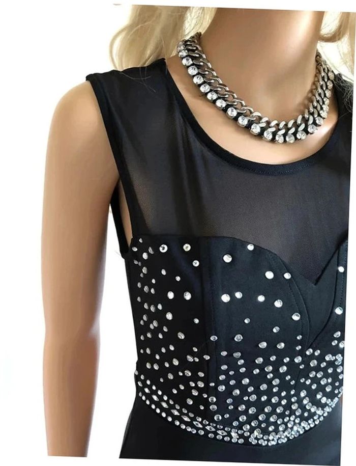 Robe noire sans manches avec strass argentés taille S jamais portée - photo numéro 1
