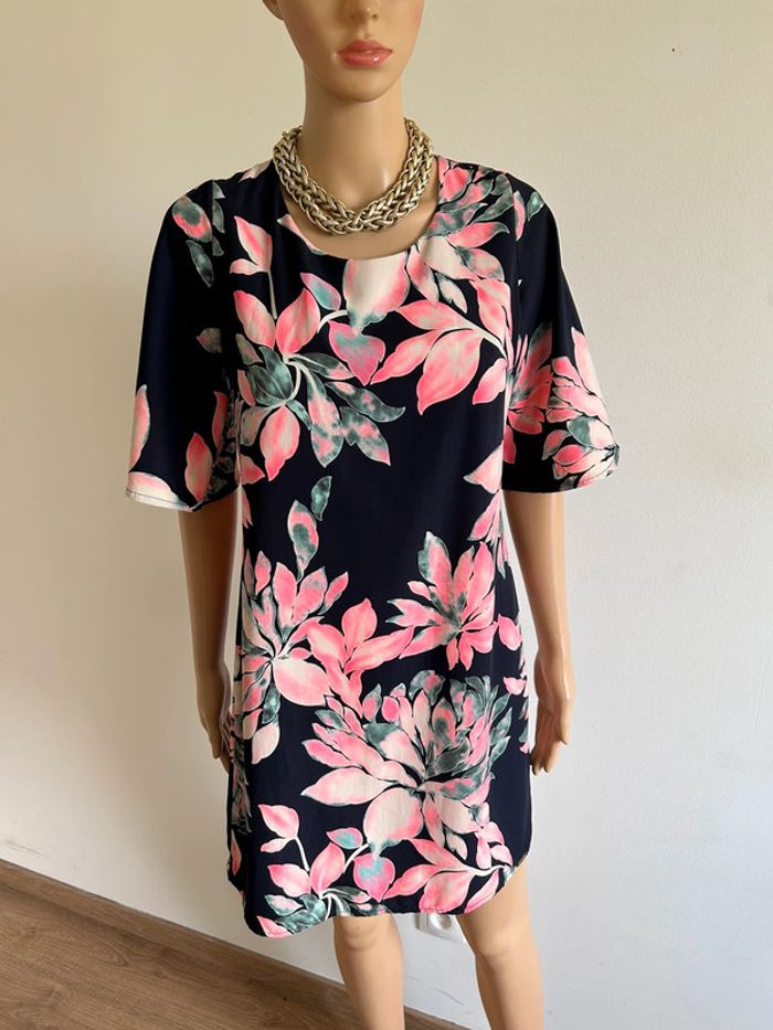 Robe bleue marine et rose à manches courtes Amélie & Amélie taille S jamais portée - photo numéro 2