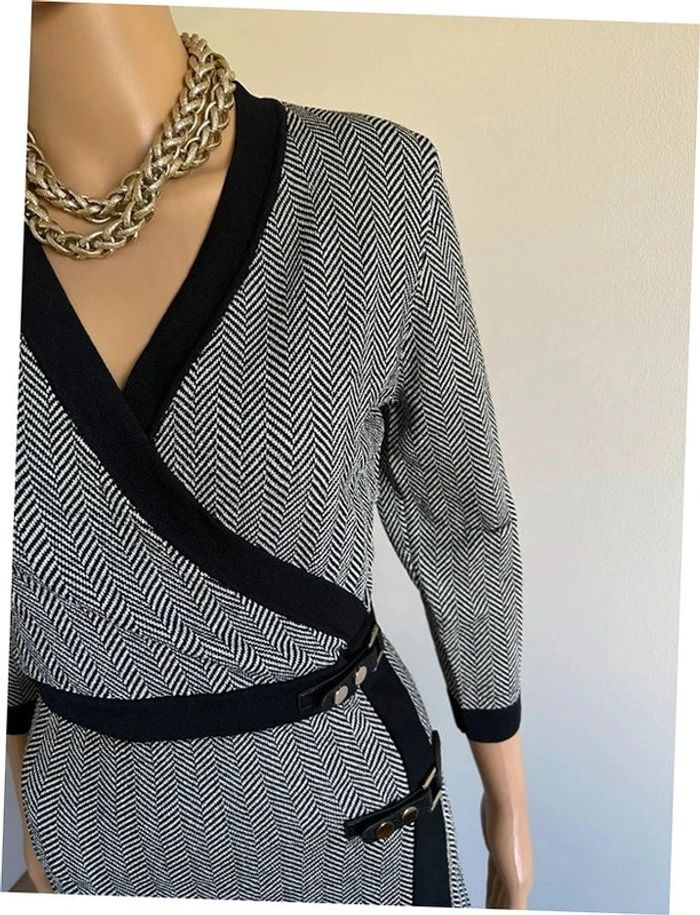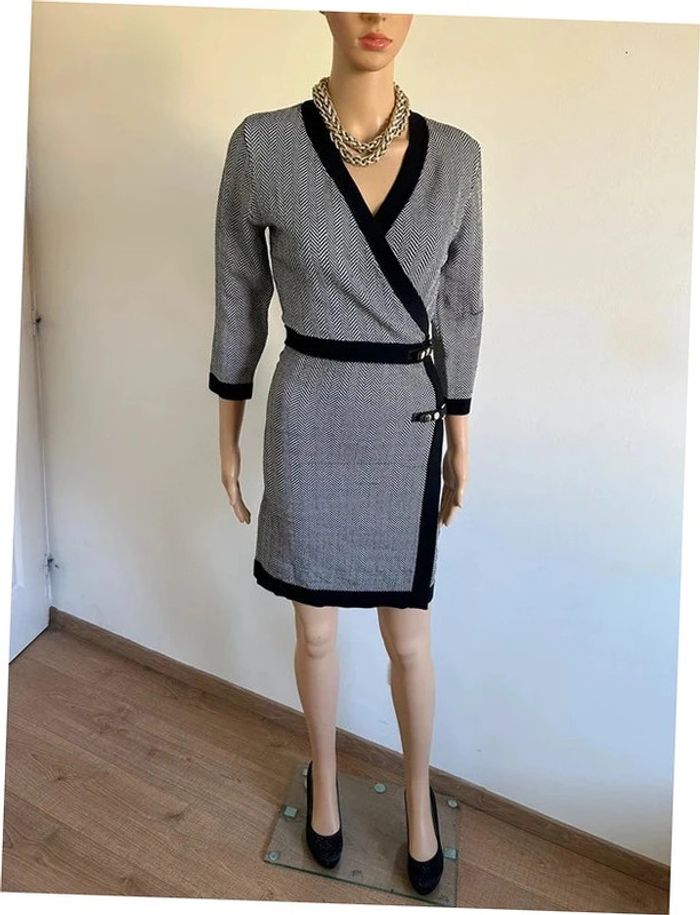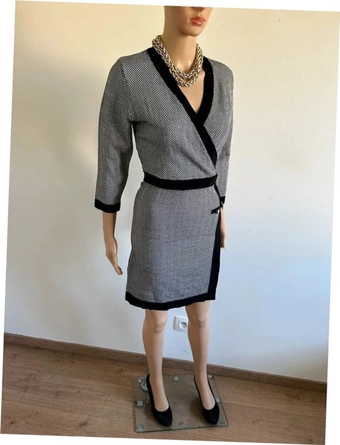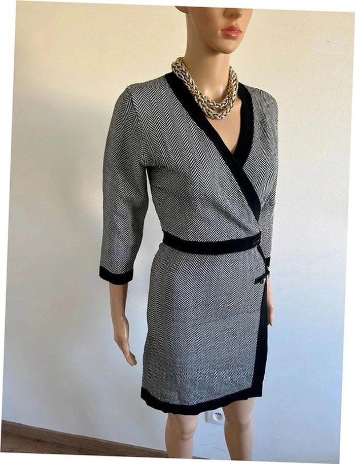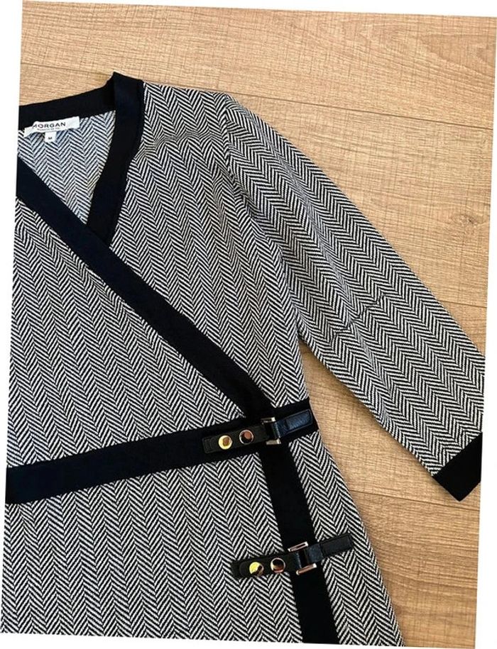 Magnifique robe noire et beige dorée, avec manches 3/4, de marque Morgan. Taille M. Portée plusieurs fois, en bon état. aisselle à aisselle 41 cms à 50 cms épaule à épaule 34 cms à 41 cms taille 37 cms à 41 cms longueur depuis épaule 90 cms Le tissu est extensible 50% viscose, 42% polyamide et 8% fil métallisé Le prix reste négociable dans la limite du raisonnable. Un petit cadeau dans le colis 🌸 (Boîte 26)