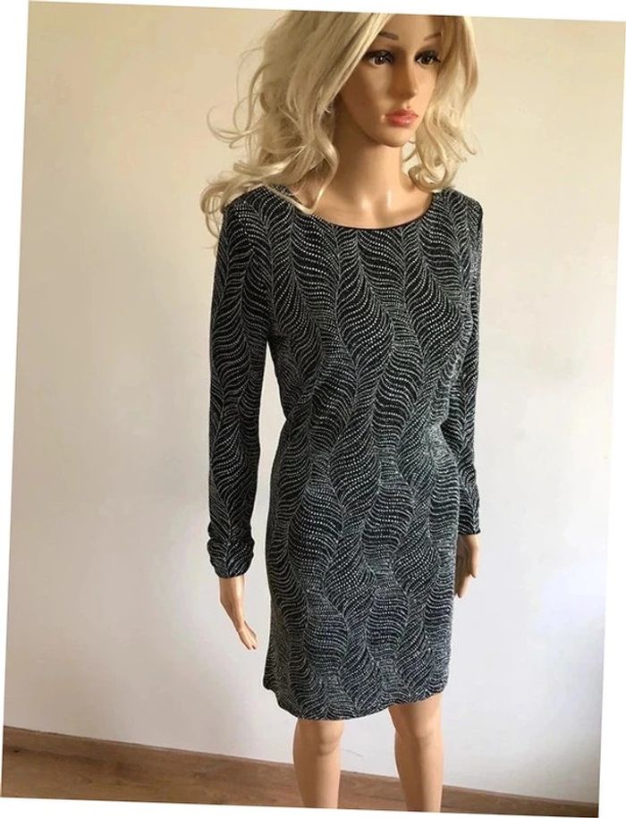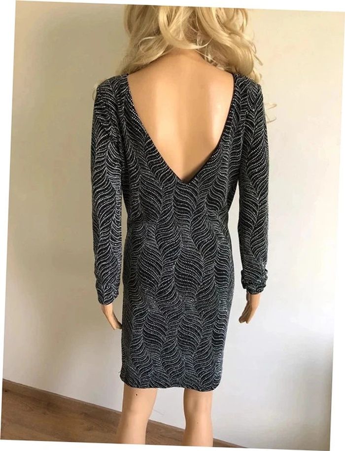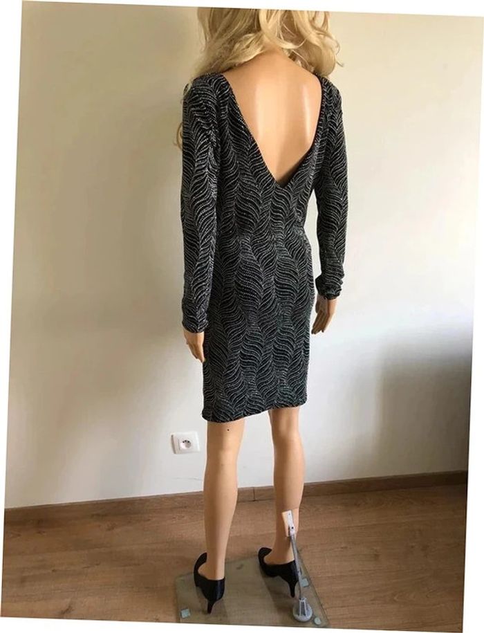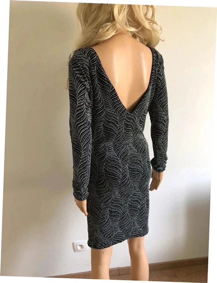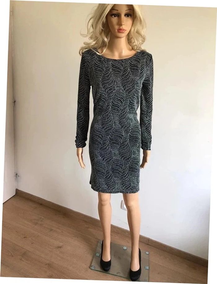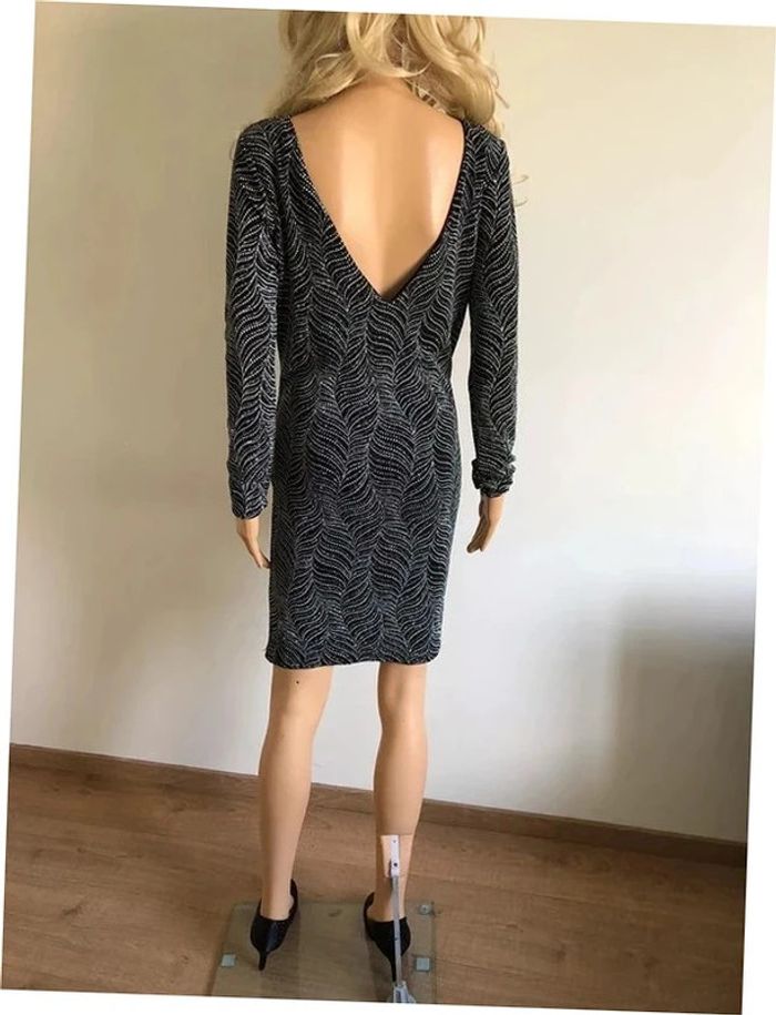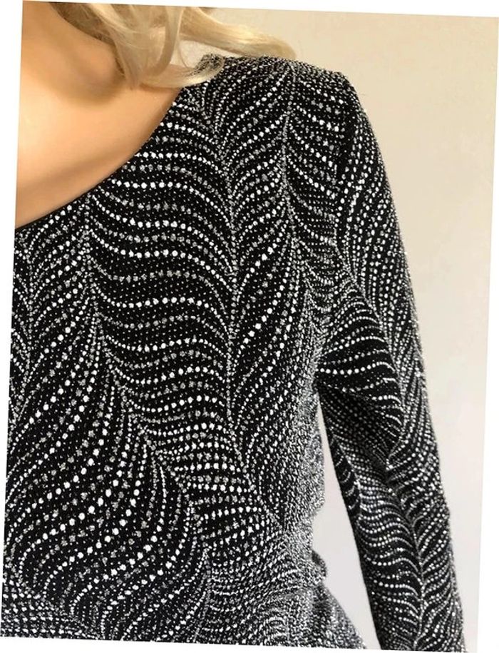 Magnifique robe argentée et noire entièrement pailletée, à manches longues, de marque Morgan.