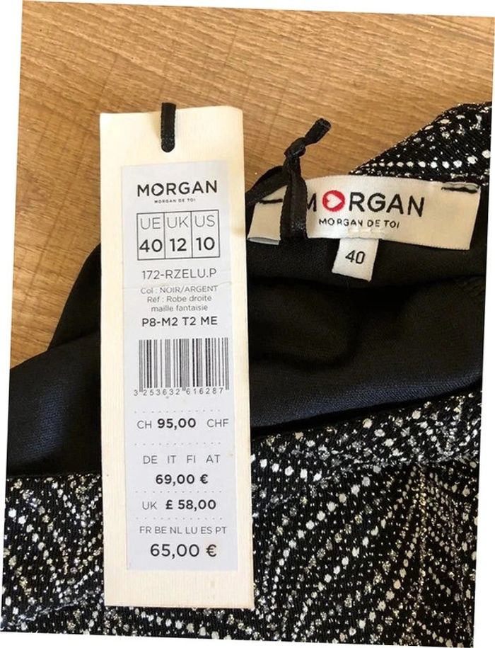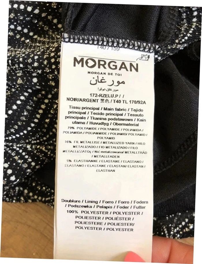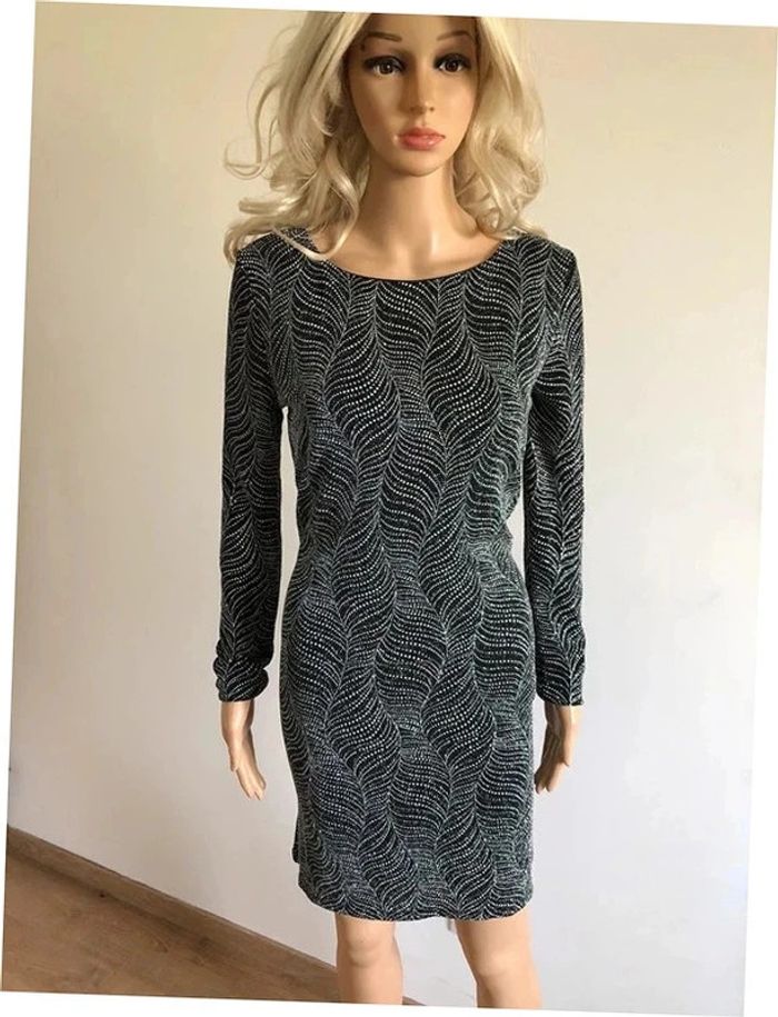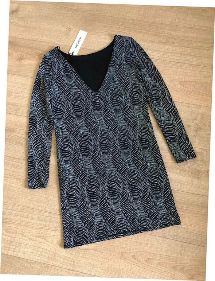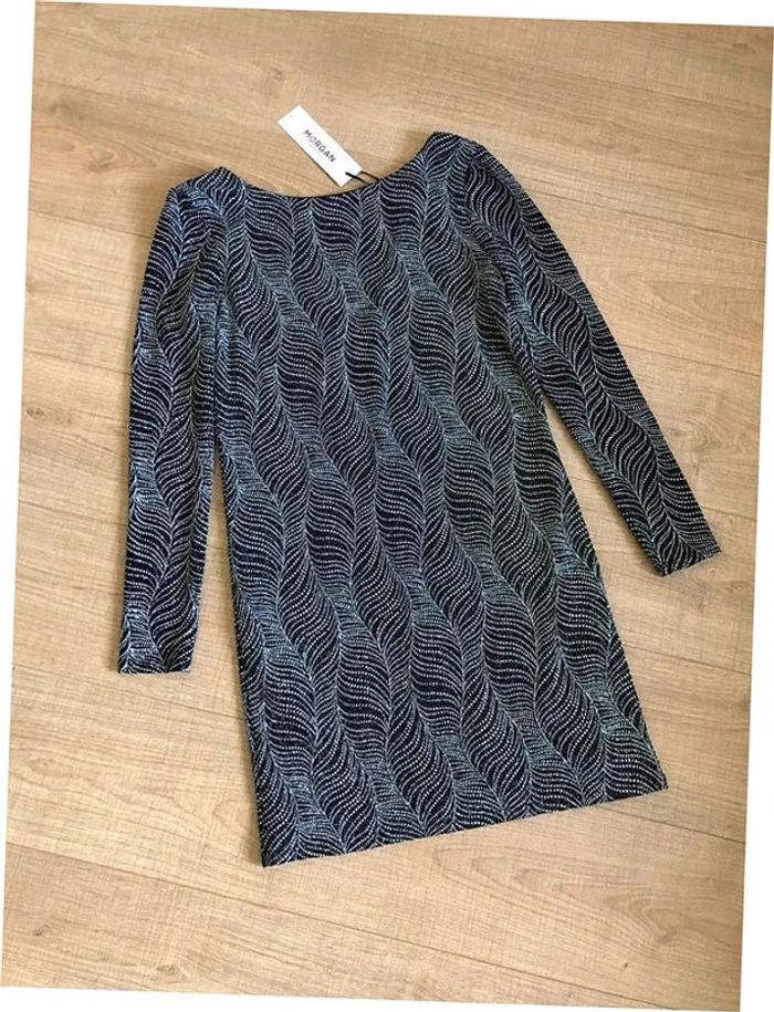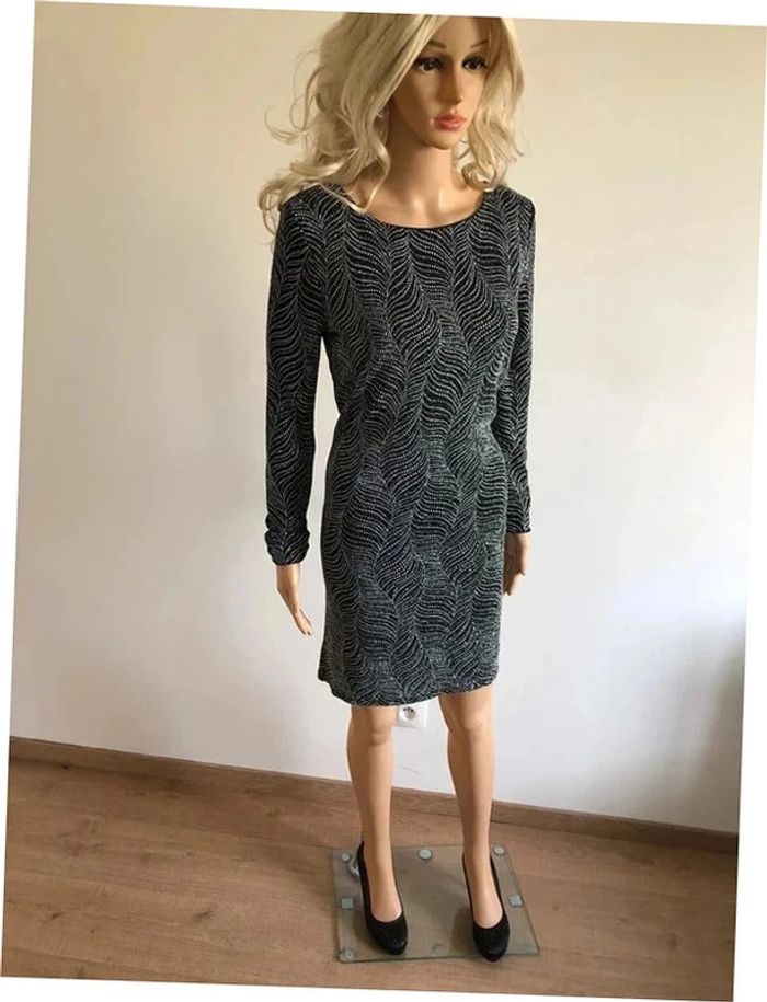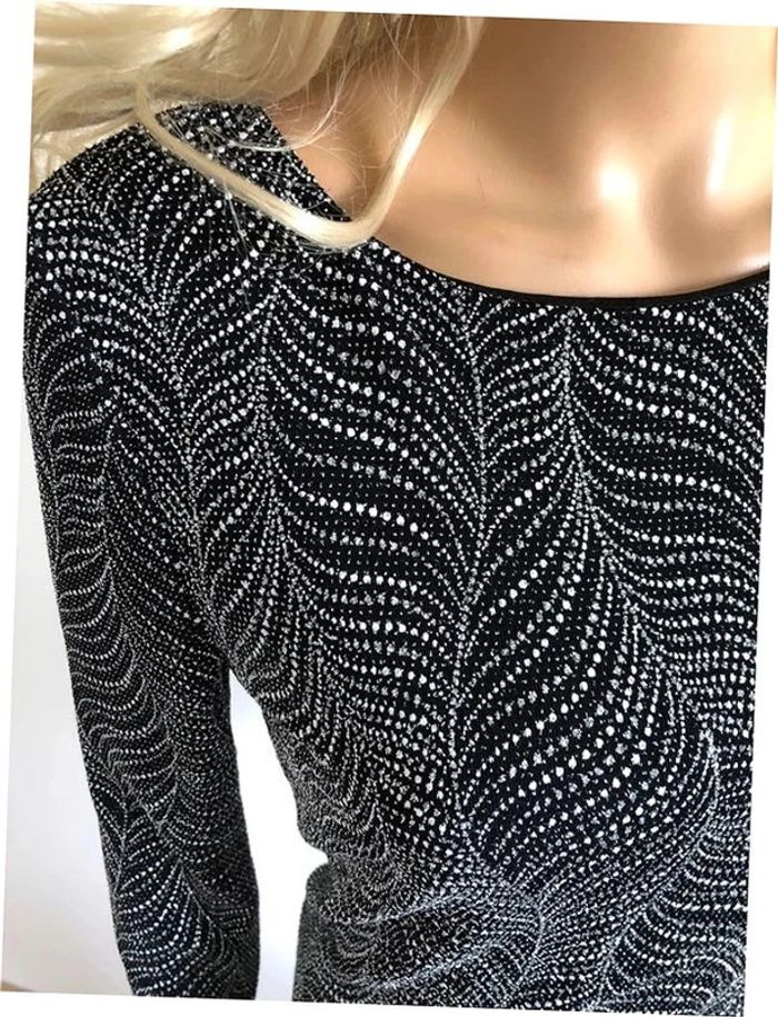 Magnifique robe argentée et noire entièrement pailletée, à manches longues, de marque Morgan.