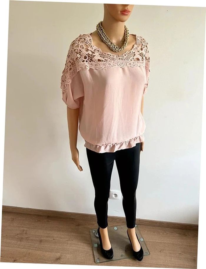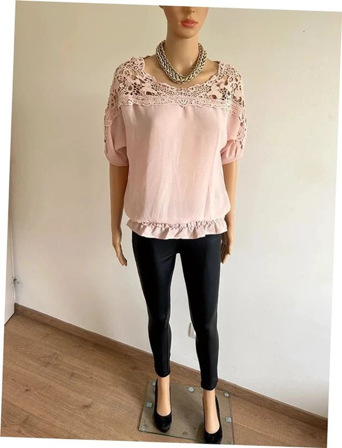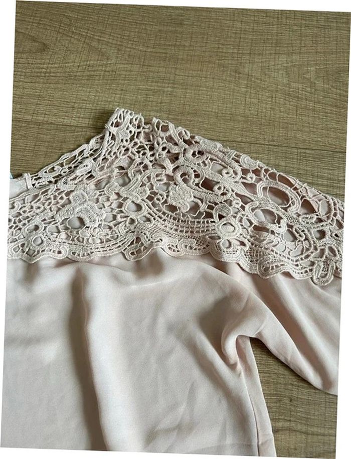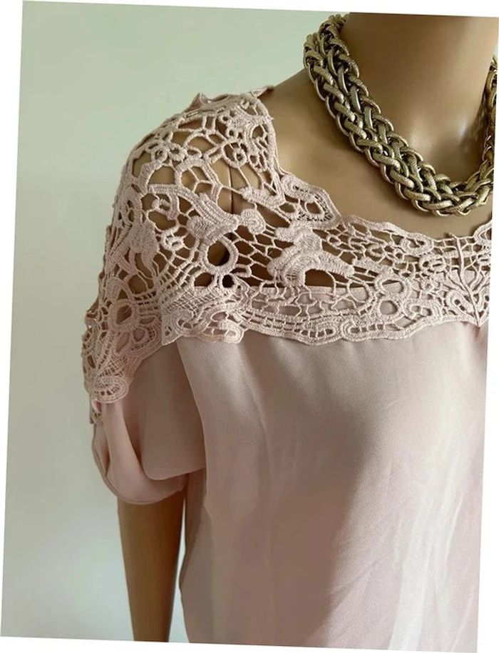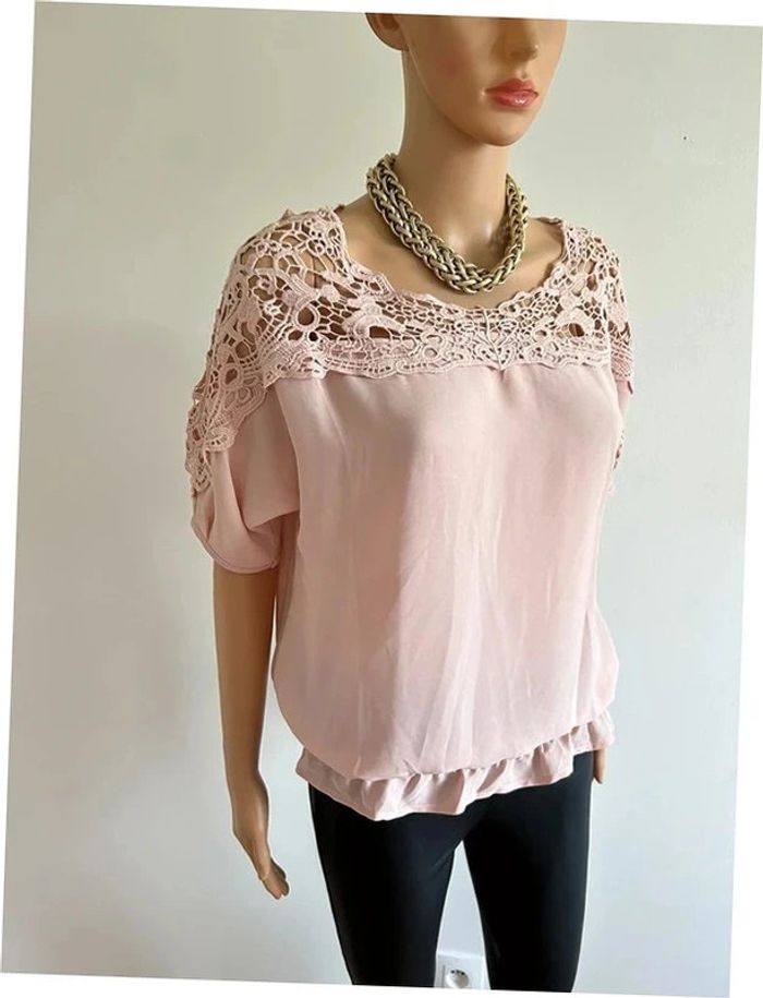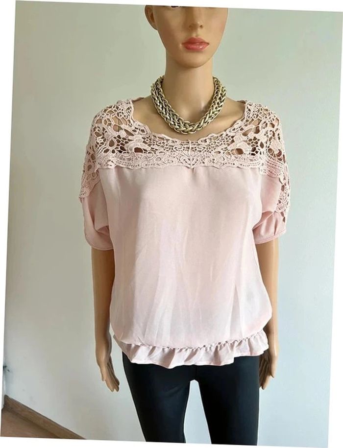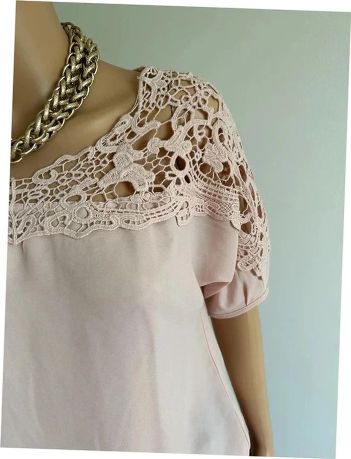 Jolie blouse rose claire à manches courtes, avec dentelle, de marque Vero Moda. Taille M. Elle est neuve avec étiquette (valeur 30€). aisselle à aisselle 52 cms taille 34 cms à 48 cms longueur depuis épaule 58 cms La taille est extensible 70% polyester et 30% coton Le prix reste négociable dans la limite du raisonnable. Un petit cadeau dans le colis 🌸 (Boîte 4)