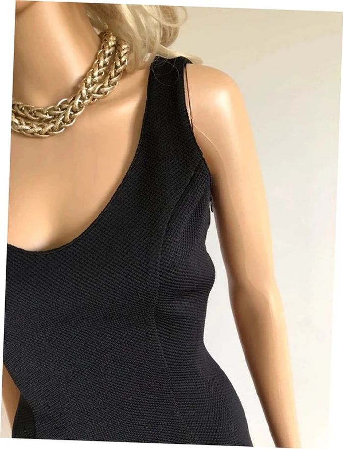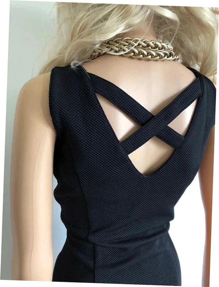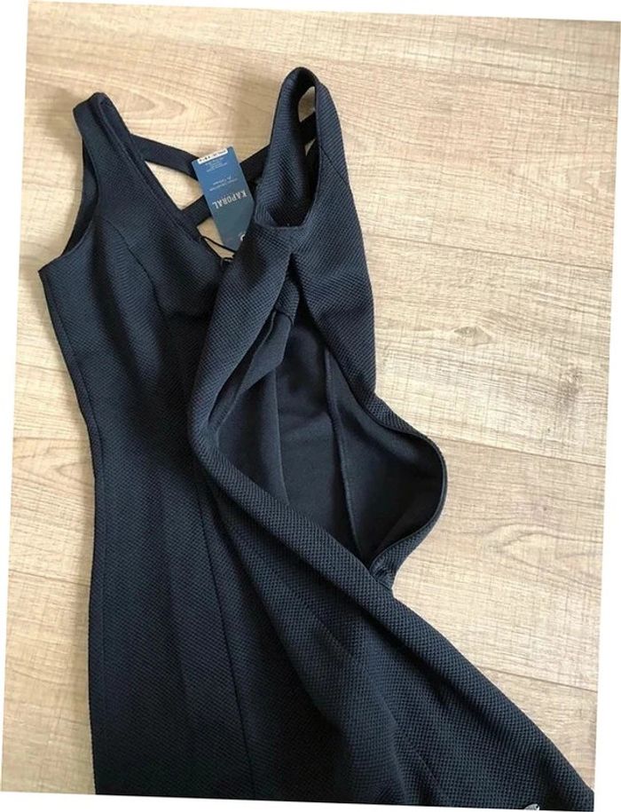 Magnifique robe noire sans manches, croisée dans le dos, de marque Kaporal. Fermeture sur le côté Taille S. Elle est neuve avec étiquette. aisselle à aisselle 45 cms taille 36 cms longueur depuis épaule 86 cms Le tissu est extensible 95% polyester et 5% elasthanne Le prix reste négociable dans la limite du raisonnable. Un petit cadeau dans le colis.