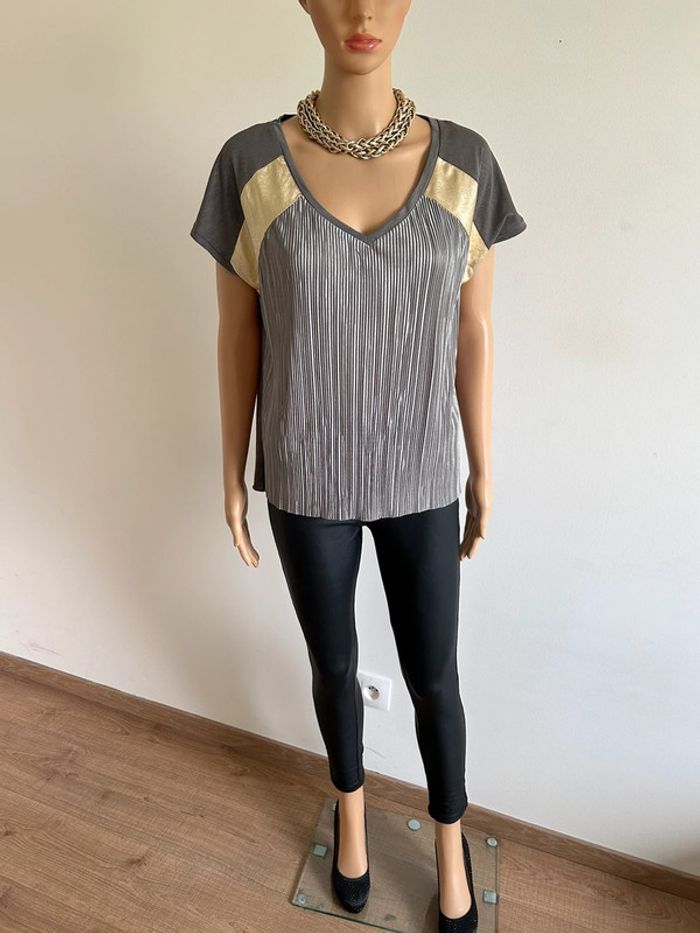 Blouse kaki et dorée à manches courtes Morgan taille M jamais portée - photo numéro 2