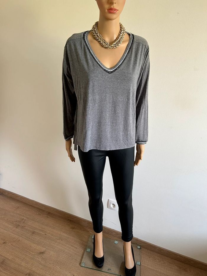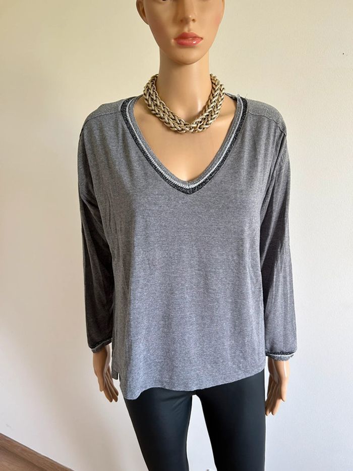 Pull léger gris et argenté pailleté à manches longues An’ge taille unique TBE - photo numéro 12