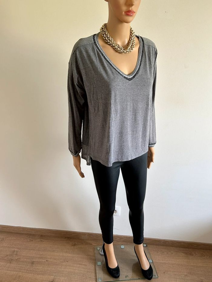 Pull léger gris et argenté pailleté à manches longues An’ge taille unique TBE - photo numéro 4