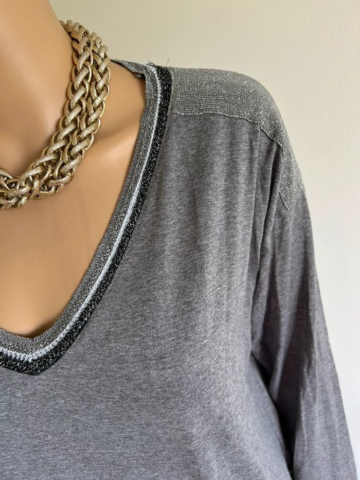 Pull léger gris et argenté pailleté à manches longues An’ge taille unique TBE - photo numéro 13